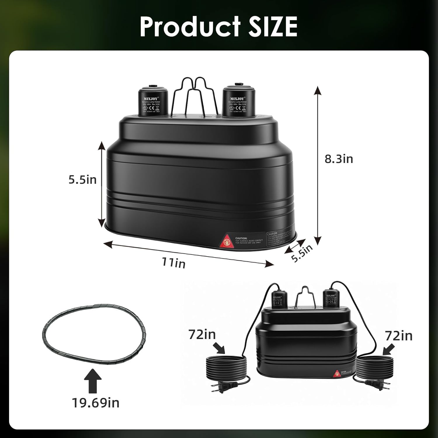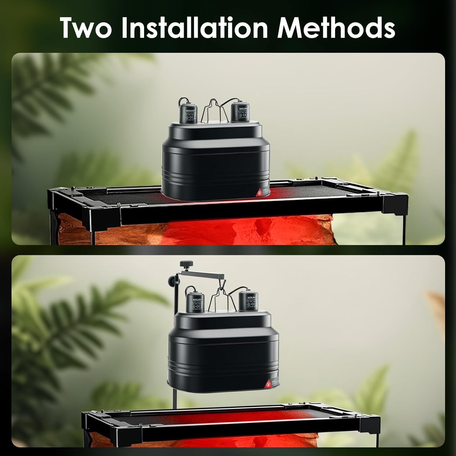 The MIXJOY Dual Reptile Light Fixture allows for a wide range of bulb combinations, ensuring you can tailor the lighting and heating to your pet’s specific needs. You can use UVB + Heat Bulb, UVB + Basking Bulb, Heat Bulb + Daylight Bulb, Infrared + Nightlight Bulb