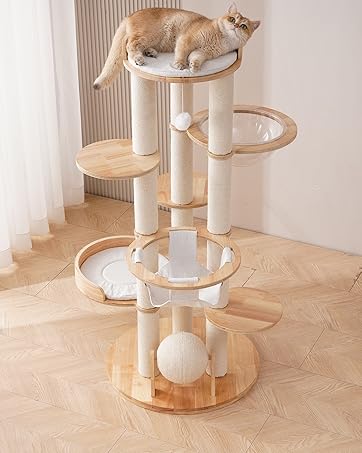 8 reviews for Modern Solid Wood Cat Tree Tower, 49″ Tall Cat Tree with Sisal Scratching Posts and Capsule for Large Cats, Natural Oak Wooden Cat Tower, Aesthetic Multi-Level Cat Climbing Tree for Indoor Cat