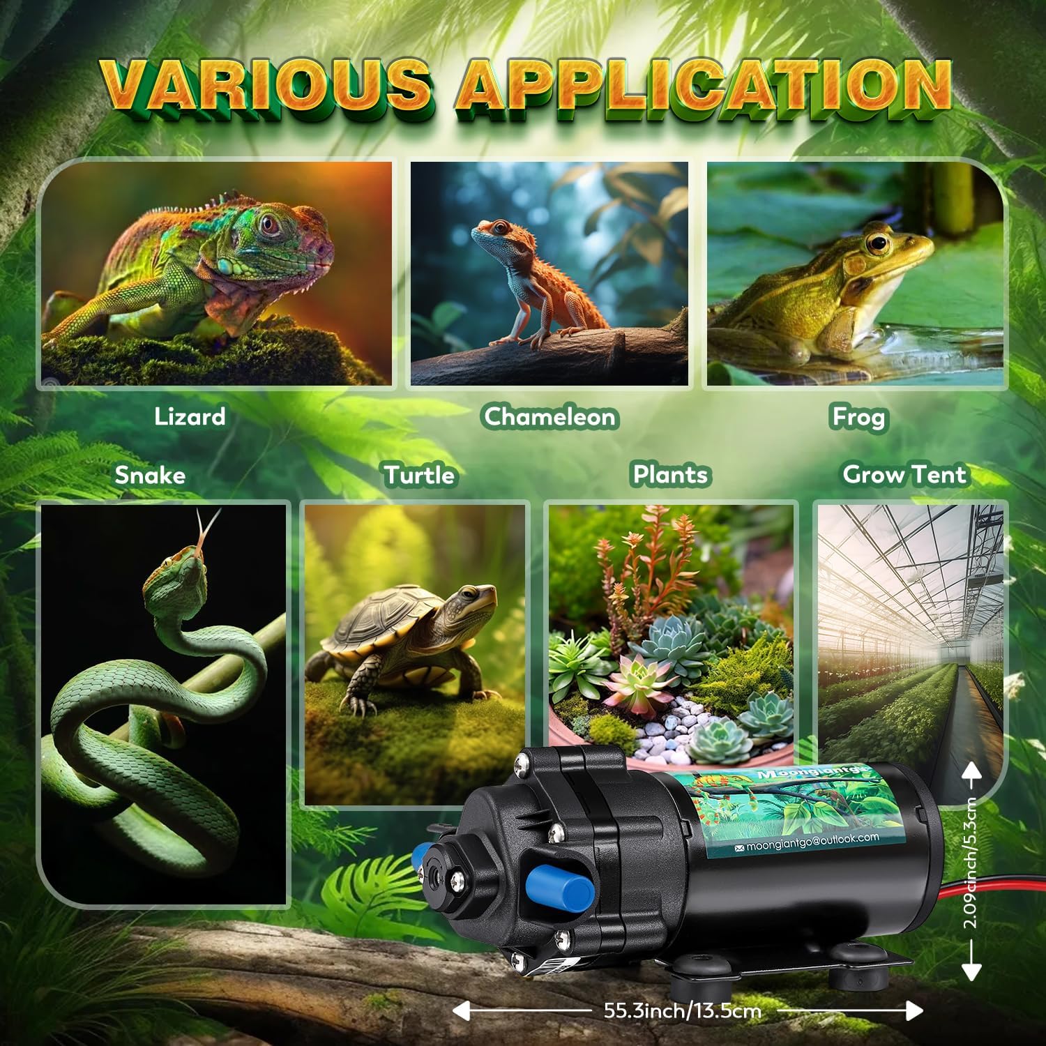 Moongiantgo Reptile Mister System – Adjustable Water Pressure Reptile Humidifier with 4 360°Adjustable Single Nozzles & 2 Double Nozzles – Terrarium Humidifier for Lizard Chameleon Snake Frog Turtle