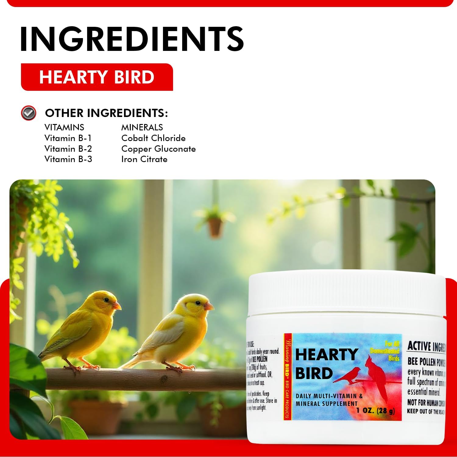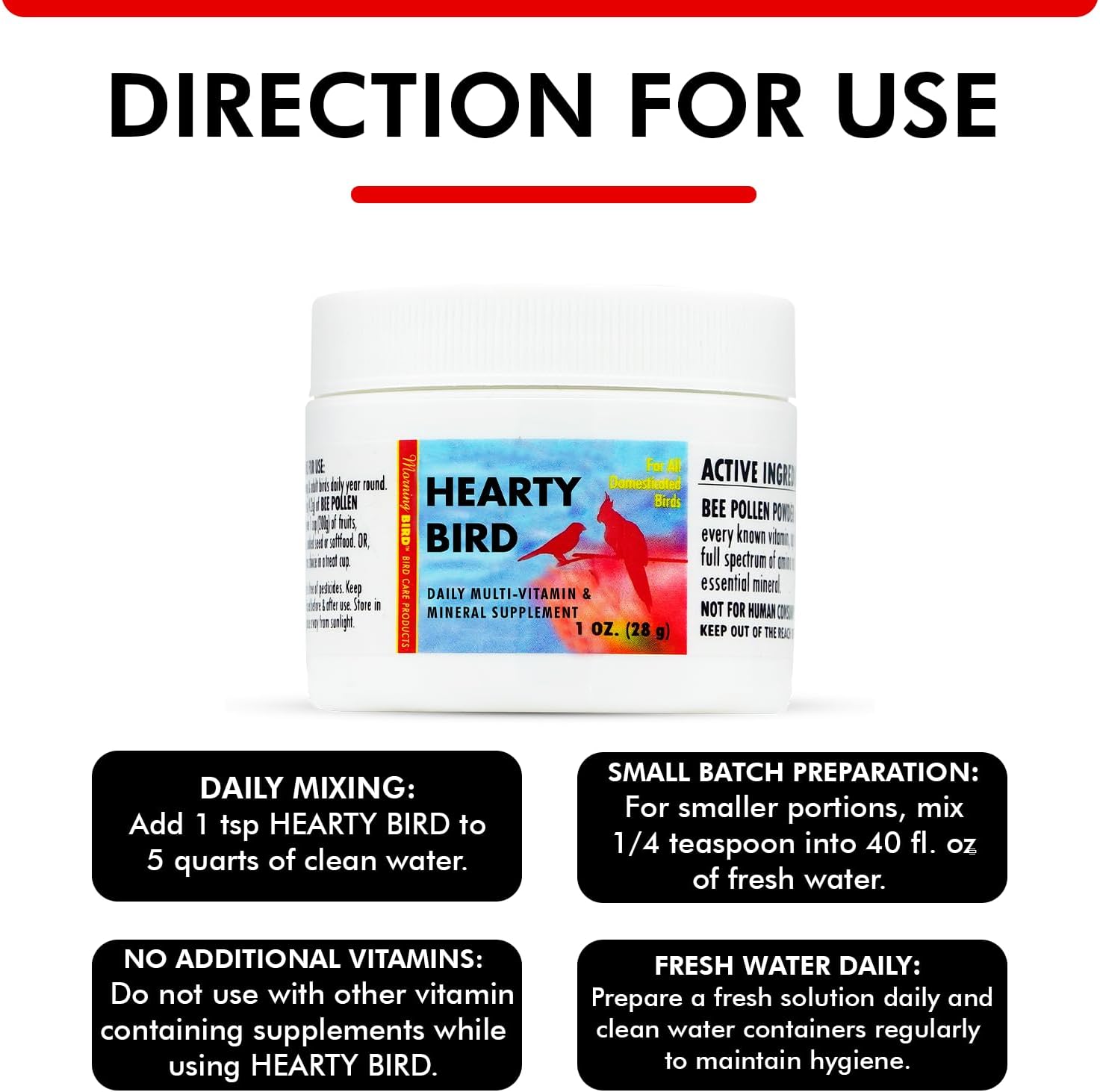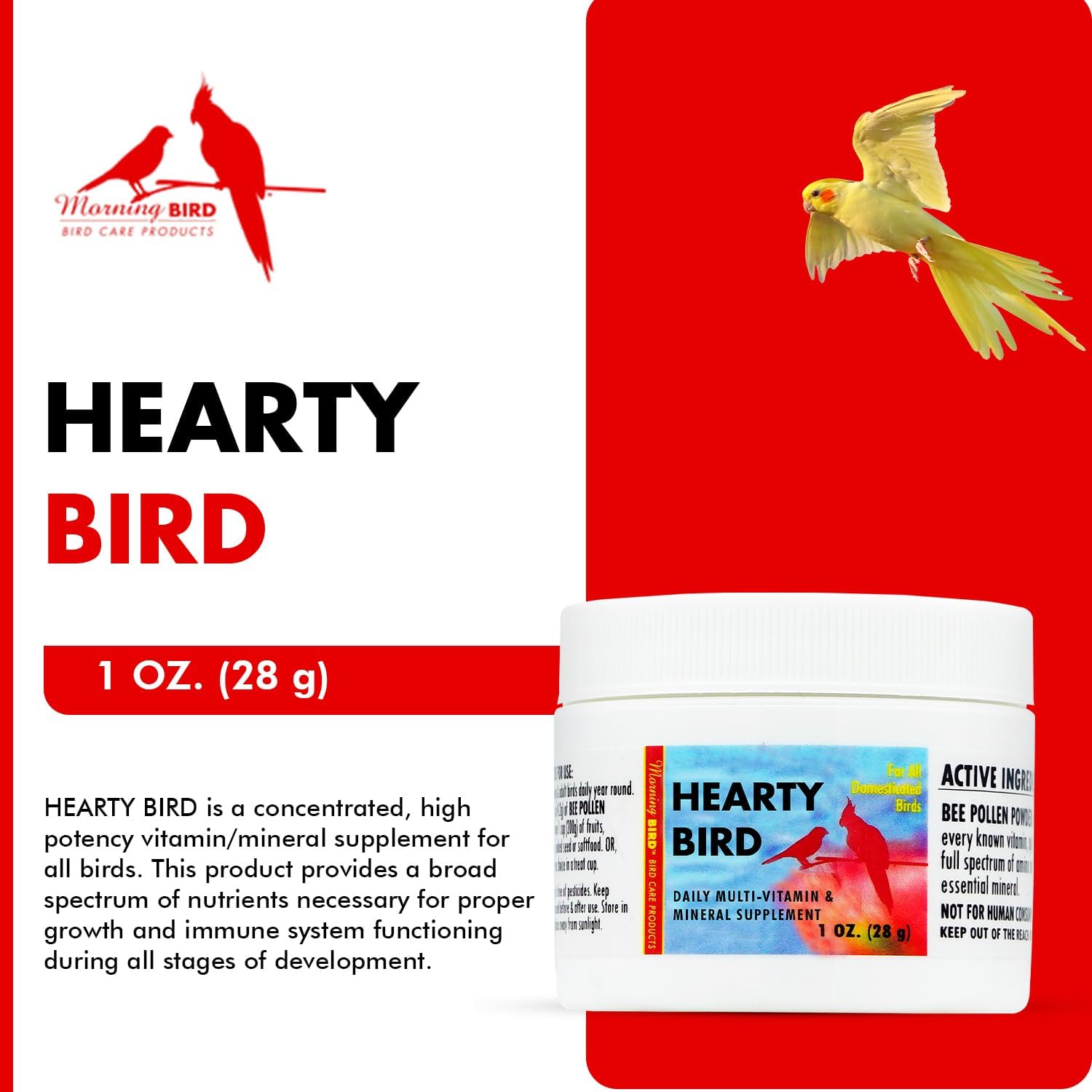 Morning Bird Hearty Bird 1 oz – Daily Multivitamin Powder for Species – Energy Support with Immune Booster & Wellness – Protein Supplement Mix with Nutrients for All pet Types