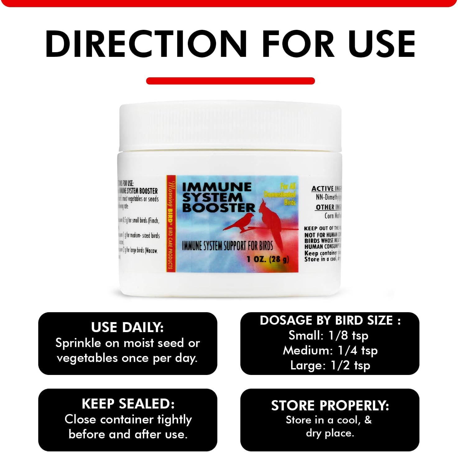 Morning Bird Immune System Booster 1 Oz – Energy Supplement for Birds – Natural Amino Acid Powder – Boosts Stamina, Cellular Health & Oxygen Use – Vitamin Powder for All Bird Species