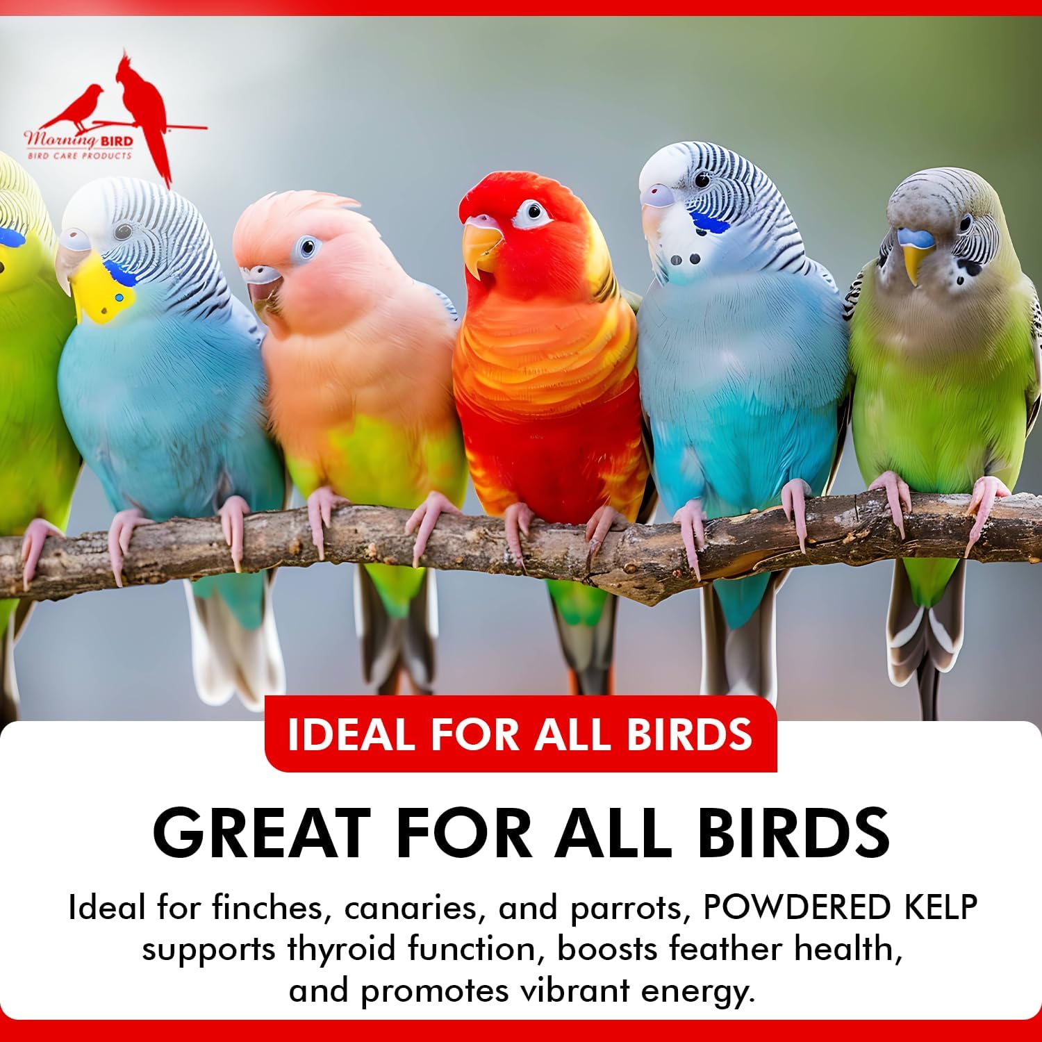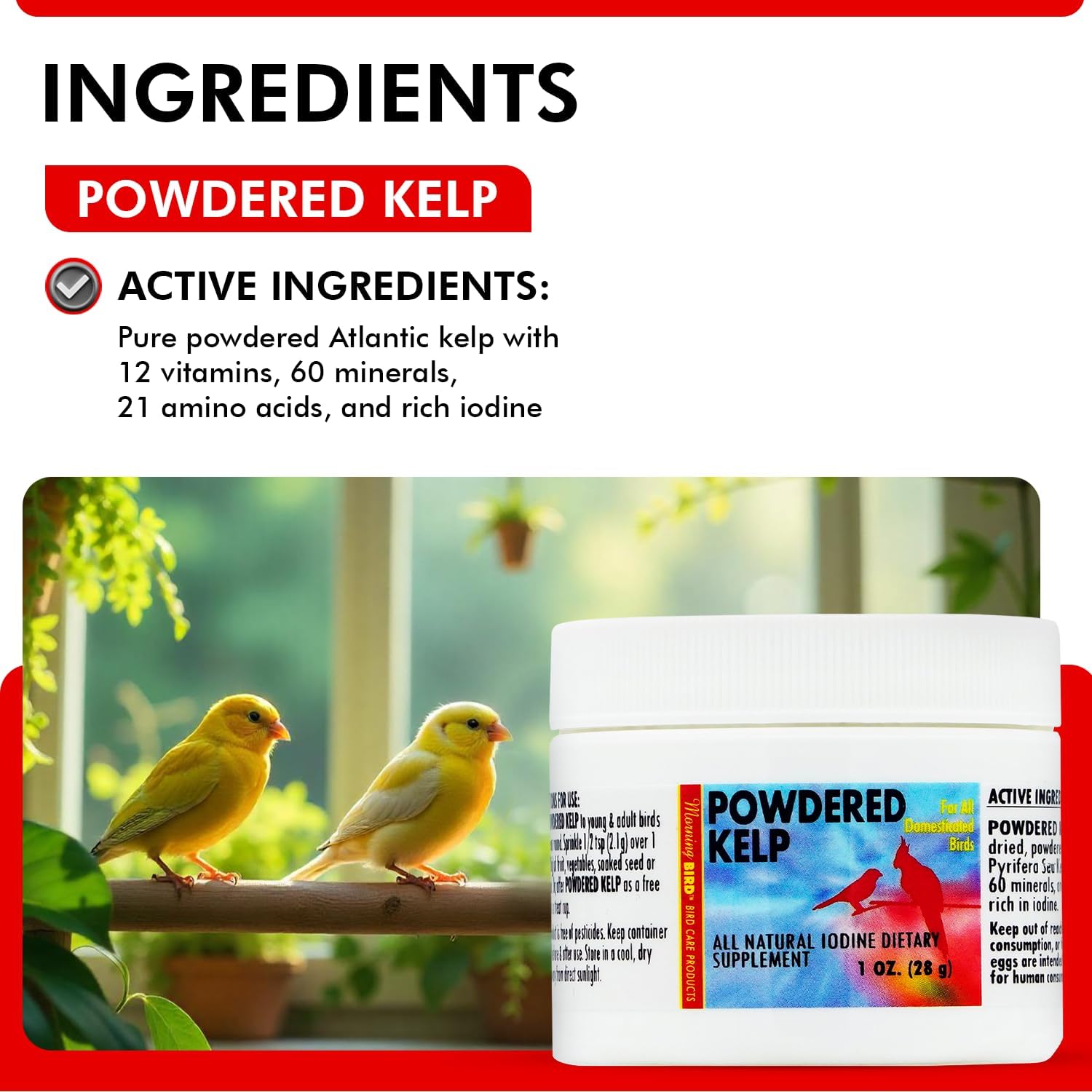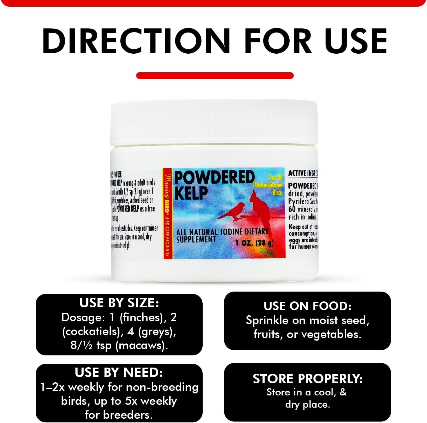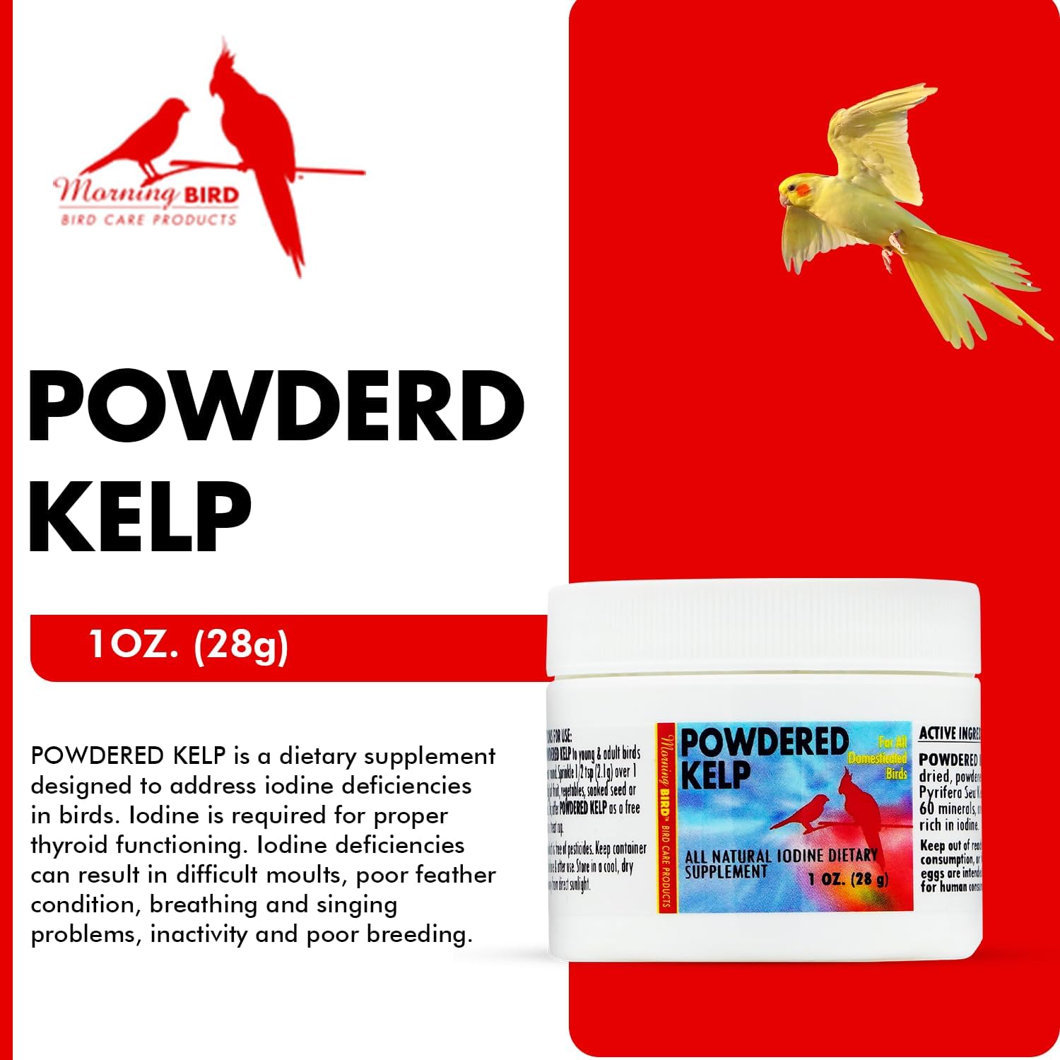 Morning Bird Powdered Kelp for Birds 1 Oz – Natural Iodine Supplement Supports Thyroid, Feather Health & Breathing – Multivitamin with Amino Acids, Minerals & Energy Boost for All Birds