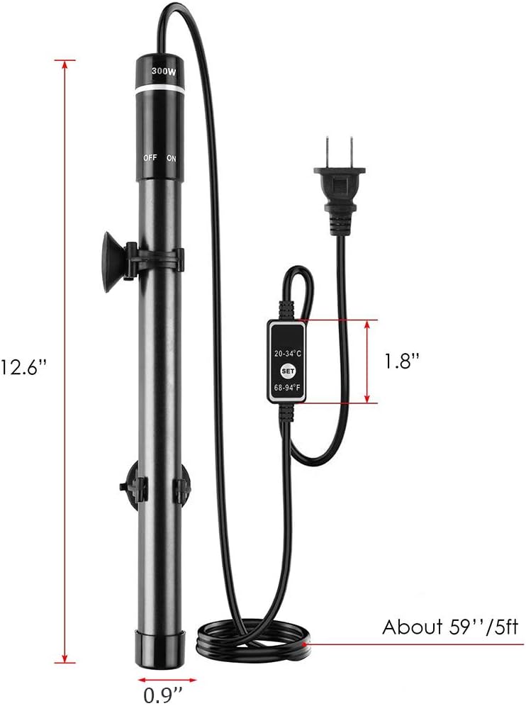 Durable Titanium Tube – This aquarium heater is made of premium Titanium Alloy, double seal material, advanced design to ensure safe operation. It has explosion-proof function while being also shatterproof and waterproof.