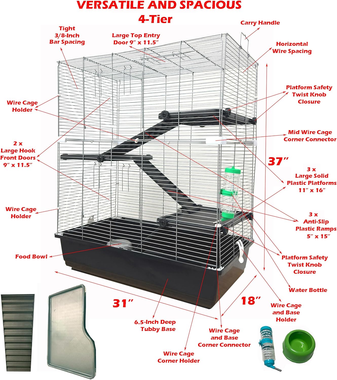 【NARROW WIRE SPACING】Tight 3/8-Inch Bar Spacing For Wide Variety of Small Animals Critters; Ideal Habitat for Hamster, Chinchillas, Rats, Mice, Mouse, Gerbil, Ferret, Hedgehog and exotic pets