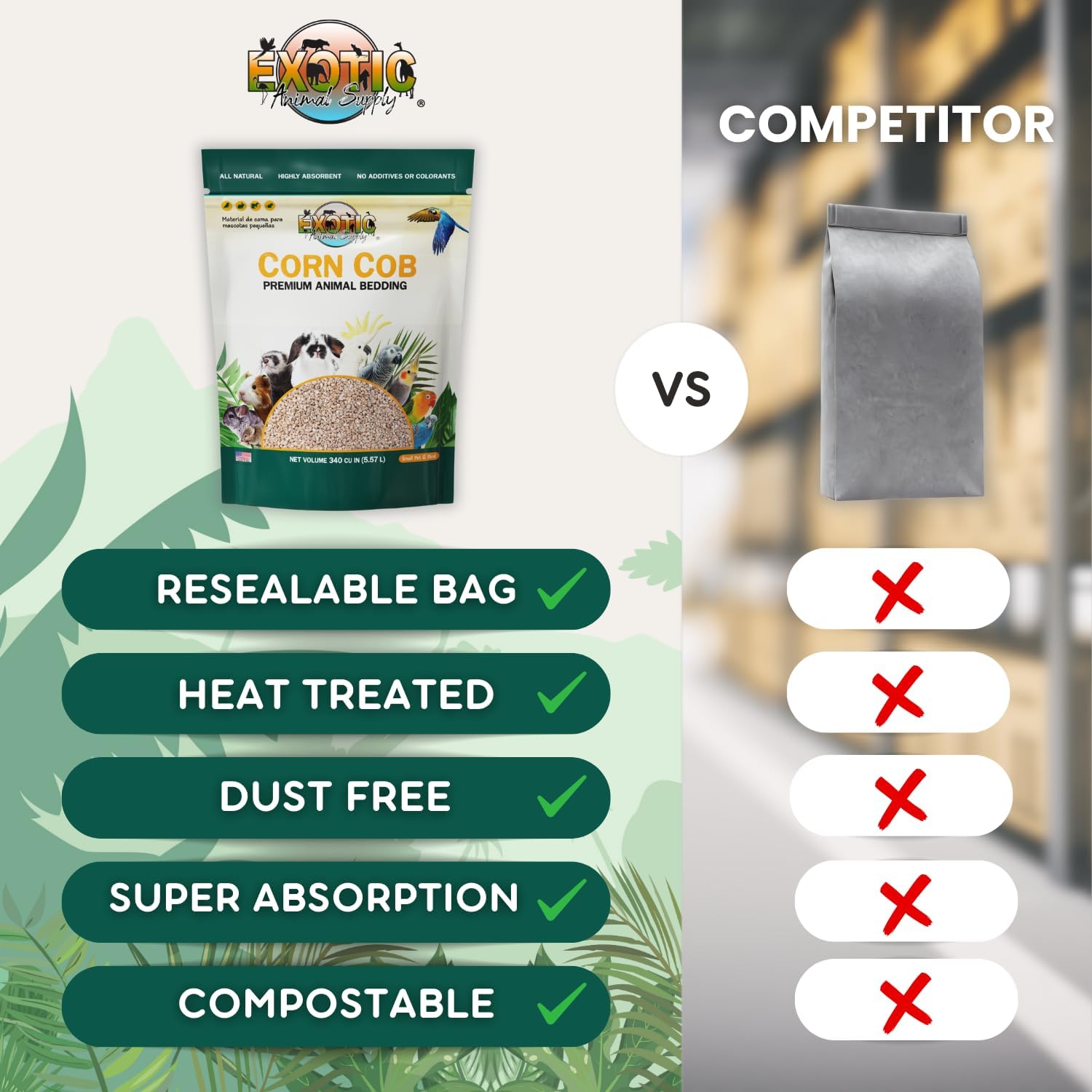 Natural Corn Cob Bedding, Corn Cob Litter, Dust-Free, Birds and Small Animals ~5lbs (340 CU in)