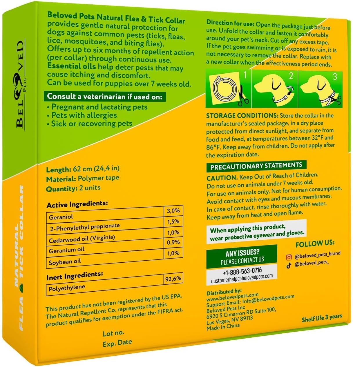 Natural Flea & Tick Repellent Collar for Dogs – Plant-Based, Waterproof, 6-Month Pest Protection – Adjustable, Safe (1 Pack, 2 Count)