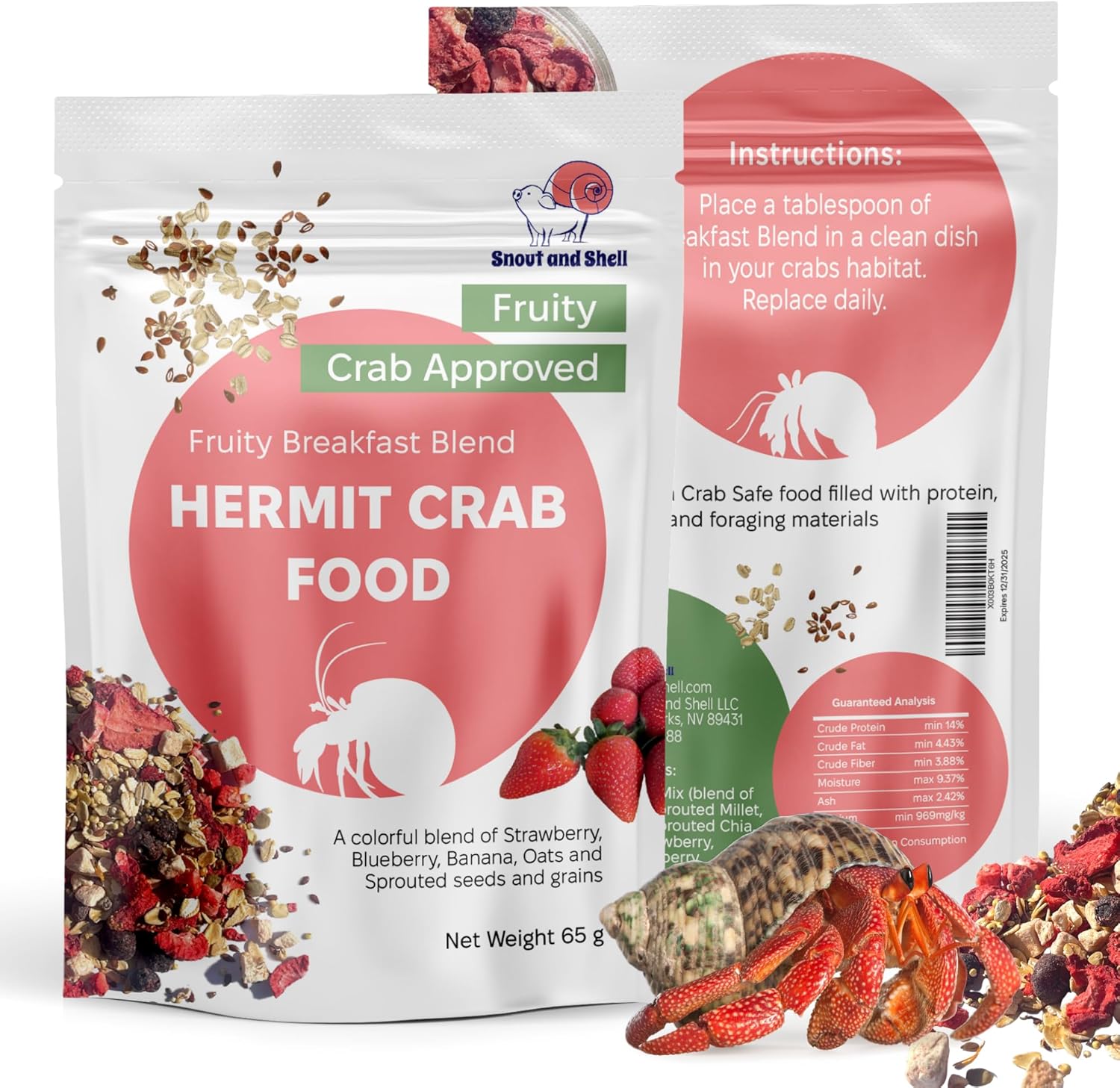 Natural Hermit Crab Food – High-Protein Hermit Food with Real Fruit and Sprouted Grains – 65 g (2.3 oz) Crab Food for Pet Hermit Crabs by Snout and Shell