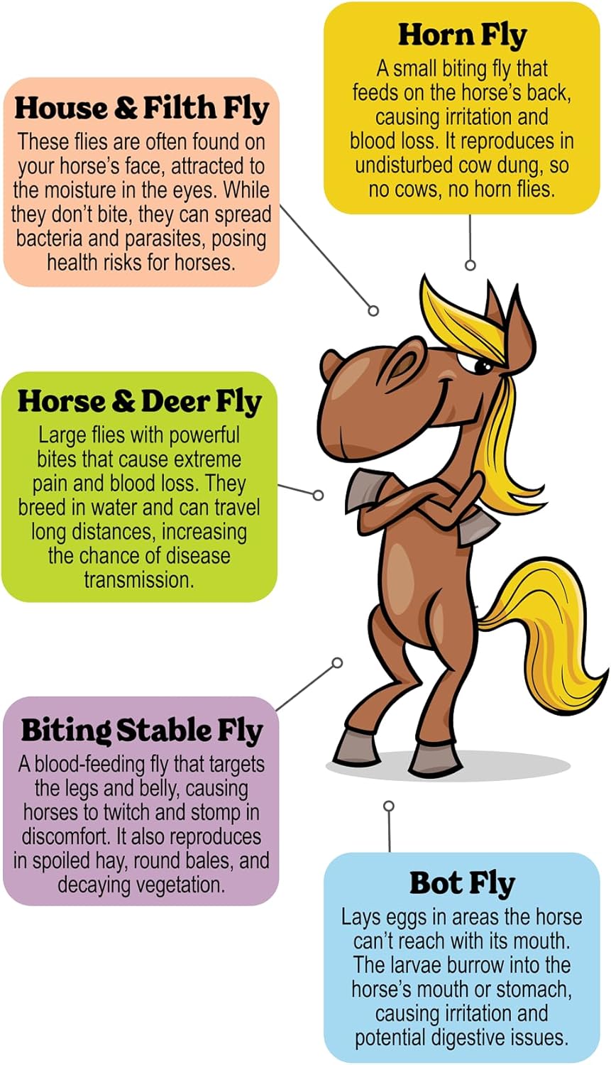 We have over 30 donkey and using this product for the first time this year we hardly have any flies .