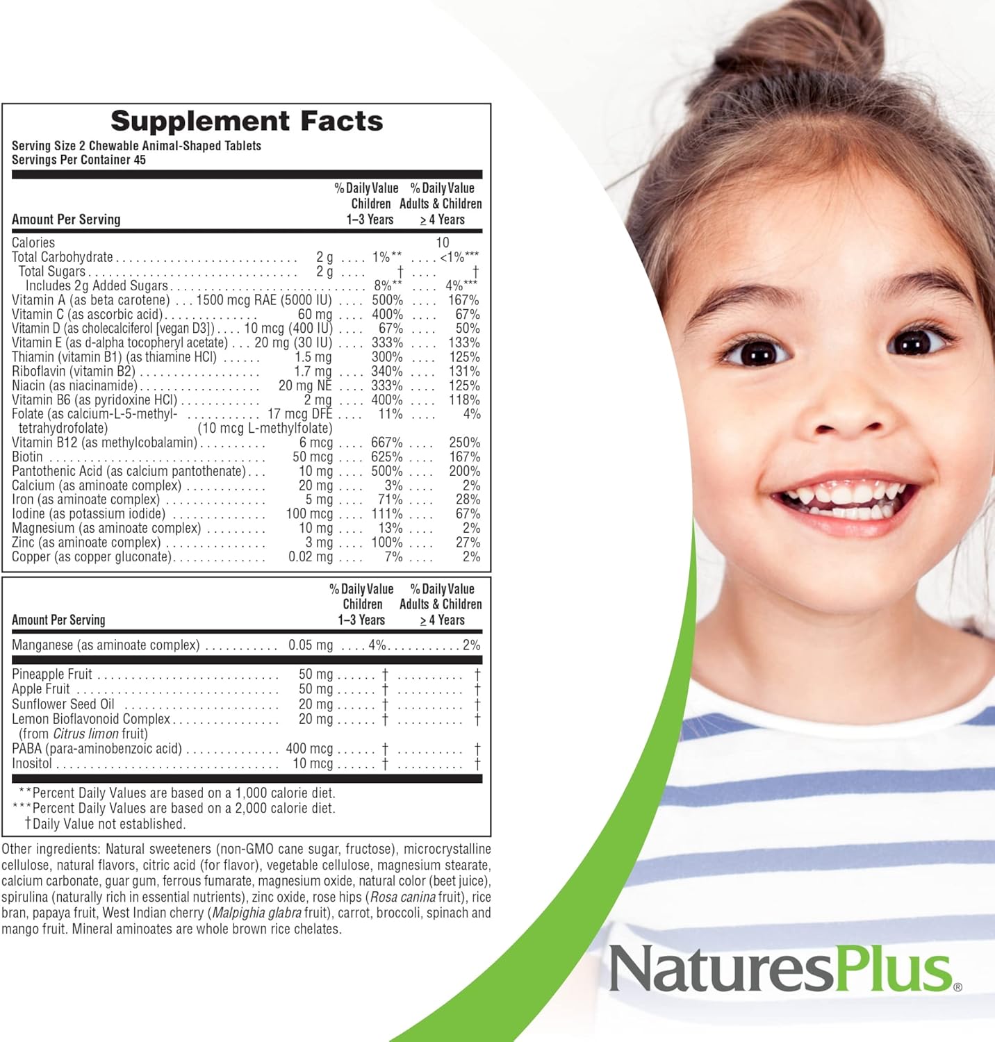 Natures Plus Animal Parade Multivitamin Children’s Chewables – Cherry Flavor – 90 Animal-Shaped Tablets – Promotes Health & Well-Being – Vegetarian, Gluten Free – 45 Servings