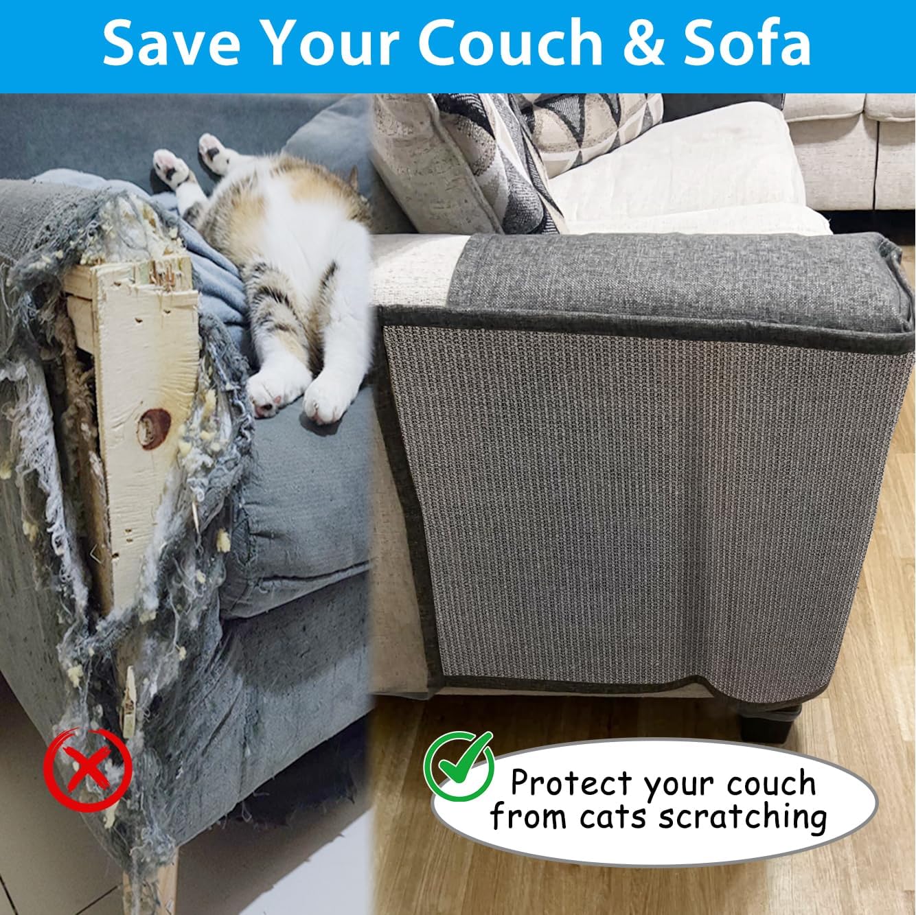 My cats, like every other cat, like to use the arms of the couch as a scratching post both on the front/sides and on top. Despite providing scratching posts and cardboard scratchers and keeping their nails trimmed, the couch was starting to get destroyed.It was a bit confusing to wrap and the fit isn’t snug, but I also didn’t measure and hoped for the best. It’s stayed on nicely and more importantly covers the top of the arm of the couch. The cats have fully enjoyed scratching this and it completely protects the areas it covers due to the thickness. Had I gotten these after getting the couch, the arms would still be in perfect condition, but since I didn’t, the added benefit is that this covers up the damage that’s already there.I was worried the beige sisal would stand out too much, but it doesn’t. The gray color is a different shade than the couch, but that’s also not obvious. I’m very pleased with how this product is working.
