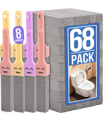 I recently tried a pumice stone with a handle, and it has exceeded my expectations, earning a solid four-star rating!The handle is a game-changer, providing a comfortable grip that makes it easy to use, even when wet. This feature allows for better control and reduces the risk of slipping,or having to touch the stone.The pumice stone is high quality, with just the right level of abrasiveness to remove stubborn stuck on ick.Iâm giving it four stars instead of five because the stone shows some wear after multiple uses, which could be improved for durability.The handle length is also a great feature, long enough to reach places but short enough to fit in a cleaning caddy.Overall, this pumice stone with a handle is a fantastic addition to my cleaning supplies.