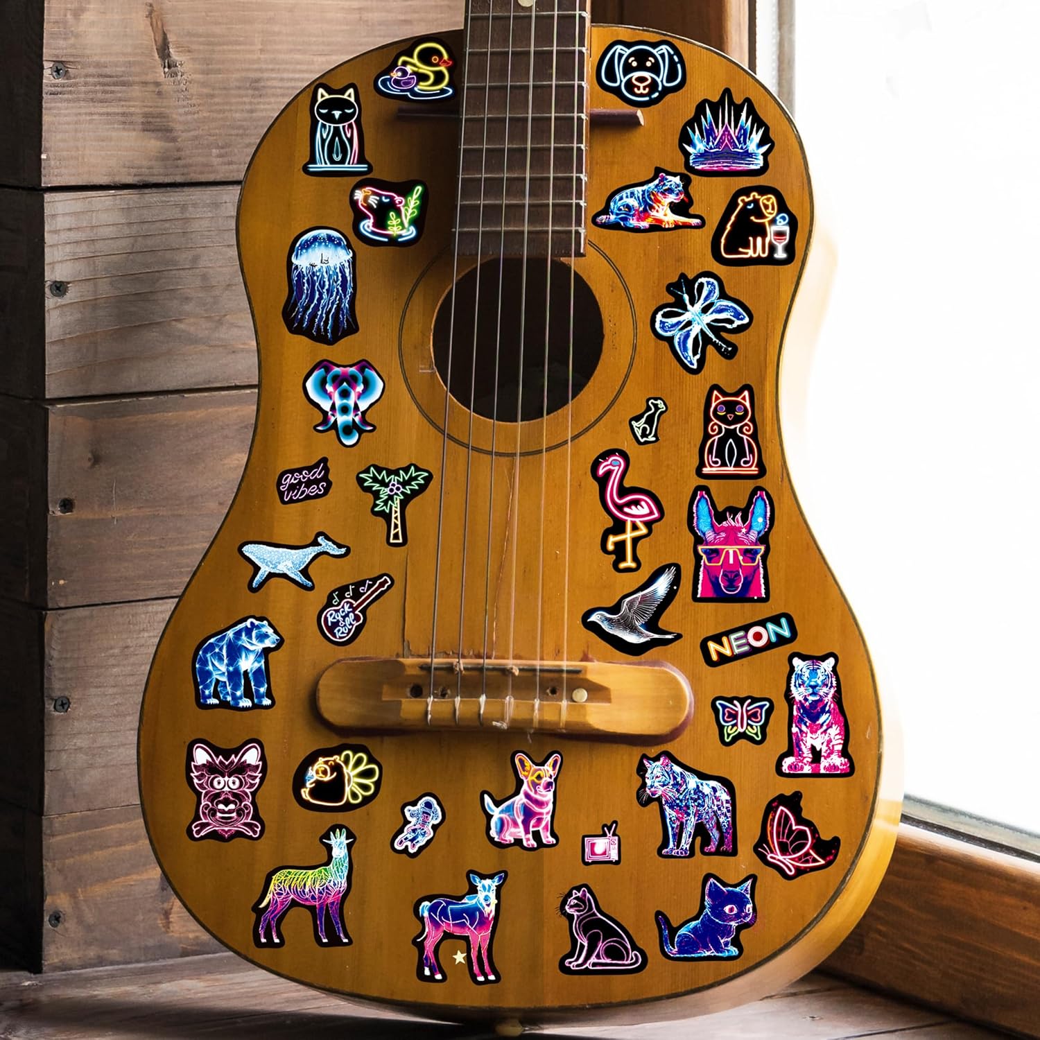 8 reviews for Neon Water Bottle Stickers for Kids, 63 PCS Vinyl Waterproof Stickers Pack for Laptop Skateboard Phone Case, Cute Neon Animals Decals for Teens