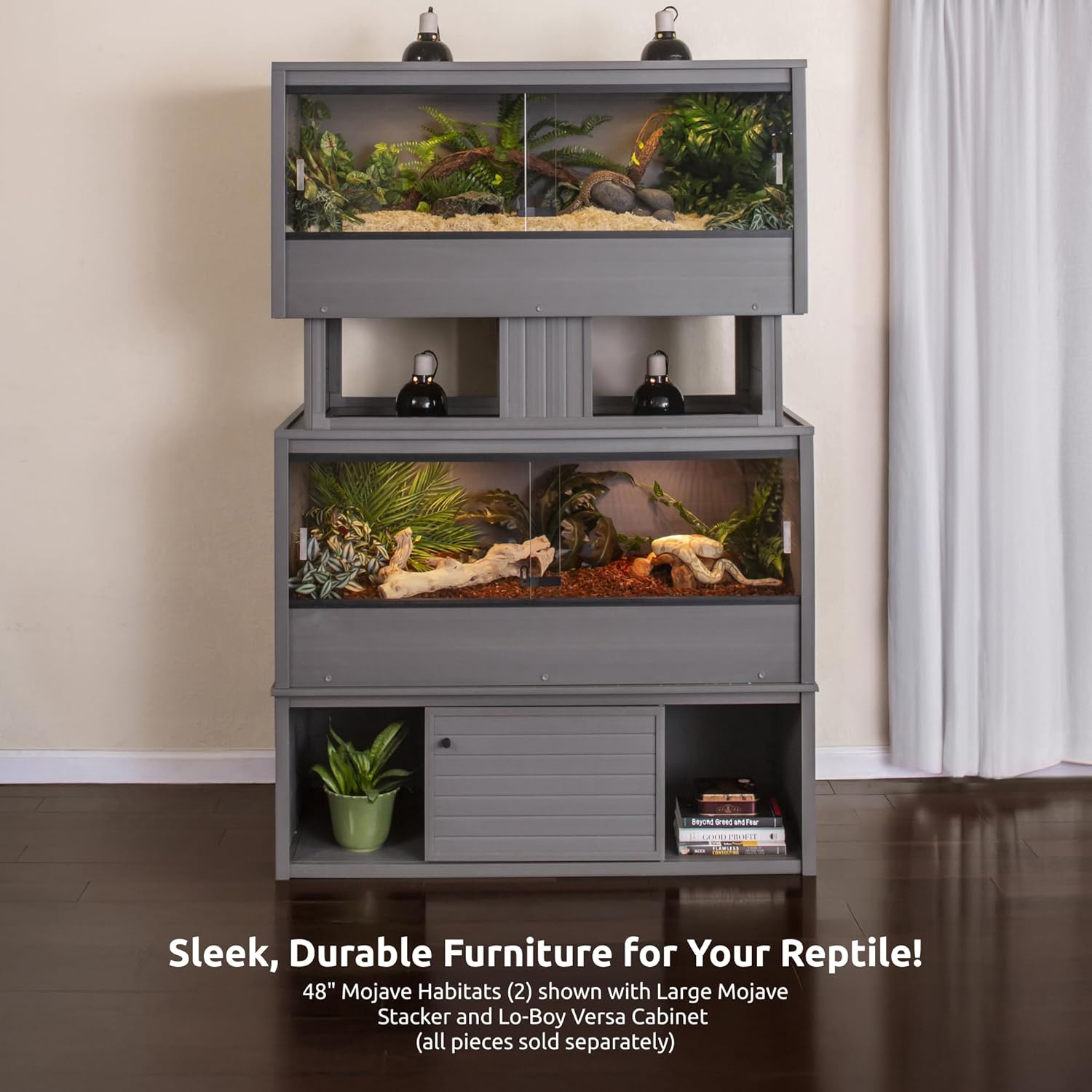 New Age Pet ECOFLEX 48-Inch Mojave Reptile Lounge in Grey- Durable Wood Plastic Composite Habitat with Vented Side Panels, Removable Sliding Glass Doors & Lock, Easy Assembly
