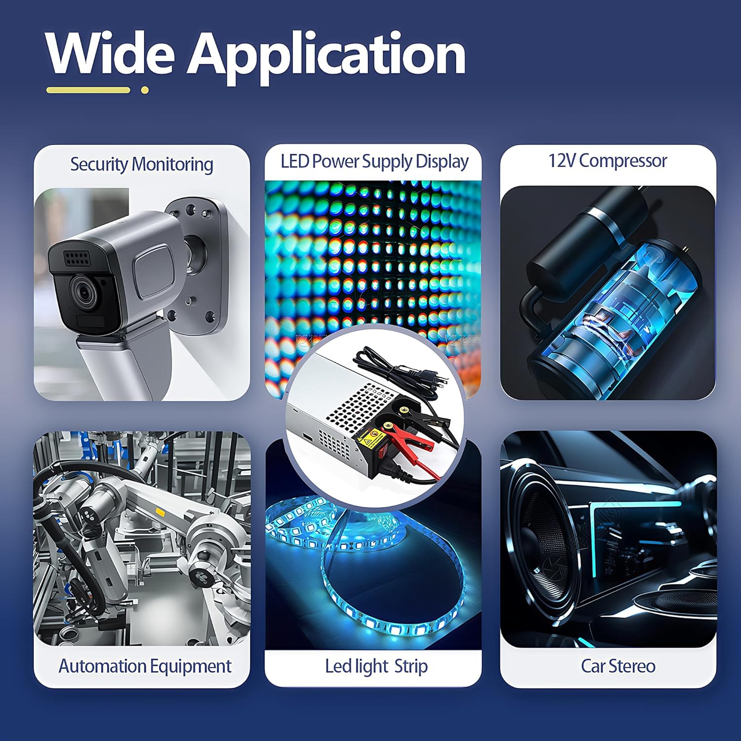 ⭐【WIDELY APPLICATIONS】Perfect Choice to Power LED Strips, 3D Printer Power Supply, Camper Power Converter, CCTV Power Supply, Medical Power Supply. It also used in industrial automation Equipment, Car Stereos, Radio, Motor, Computer Project, Boat, Humidifier, Brushless Motor,Household Appliances, Electronic Devices. Automation Equipment, Computer Project-Servos, Planting, Research Rooms, Air Compressors, Displays and more 12V Device.