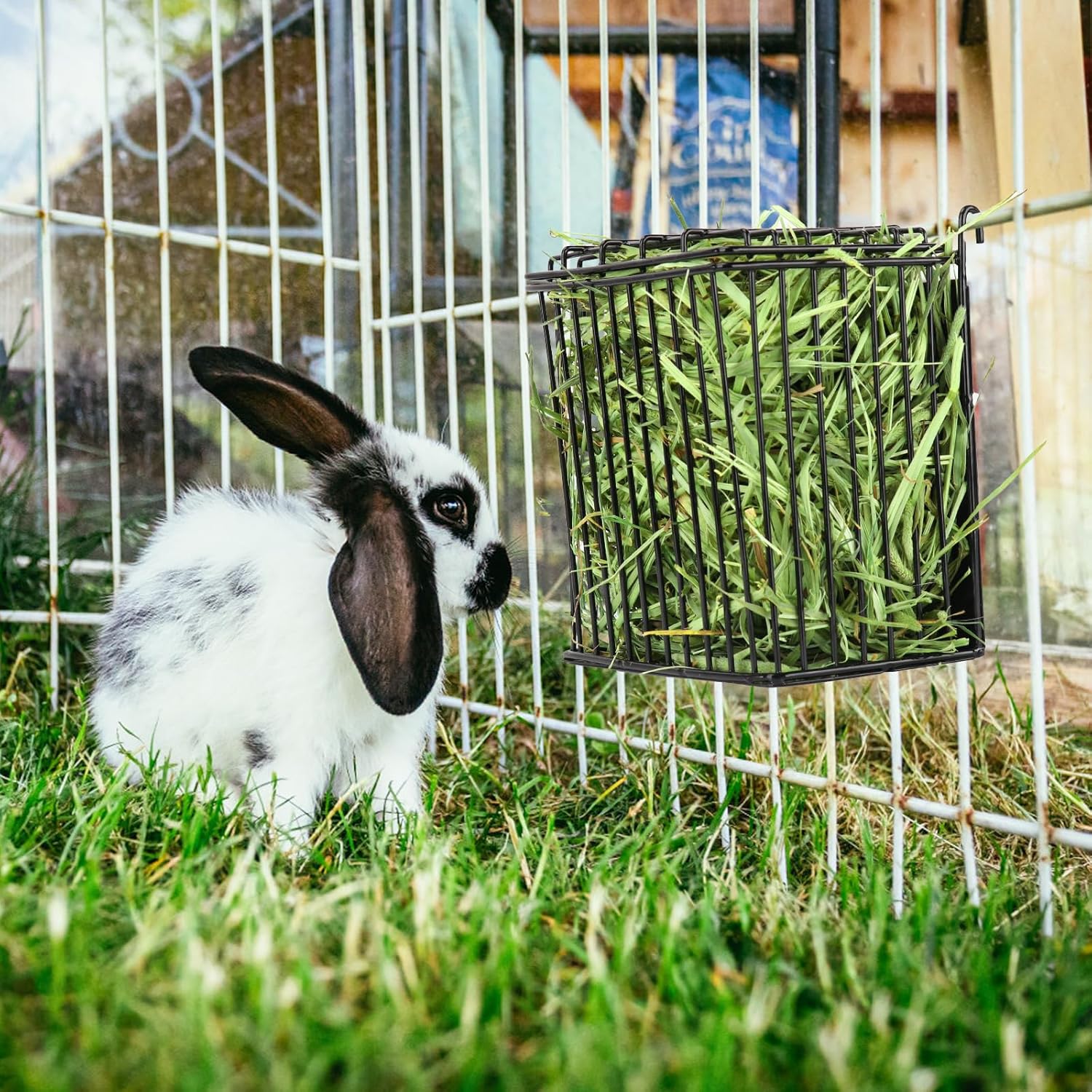 8 reviews for New Upgraded Rabbit Hay Feeder,Comes with Lid to Prevent Critters from Jumping in,Metal Frame Hay Rack with Adjustable Hook,for Rabbits Guinea Pigs Bunny Chinchillas Small Animals (Black)