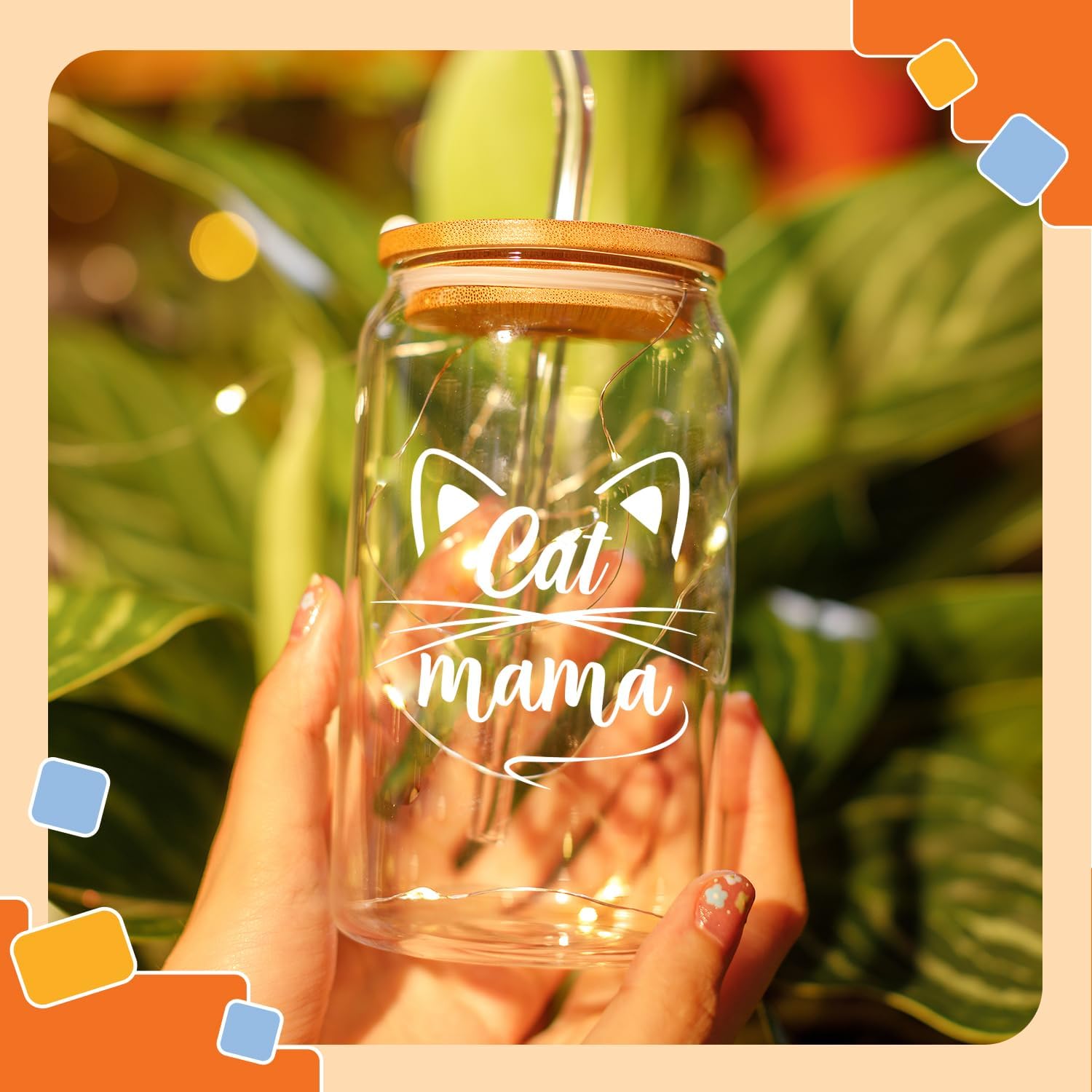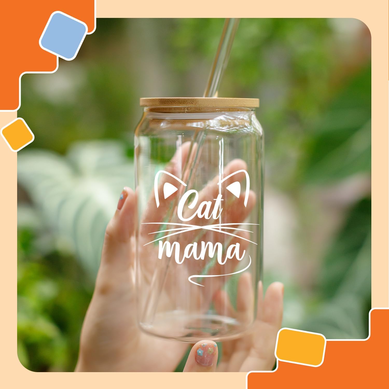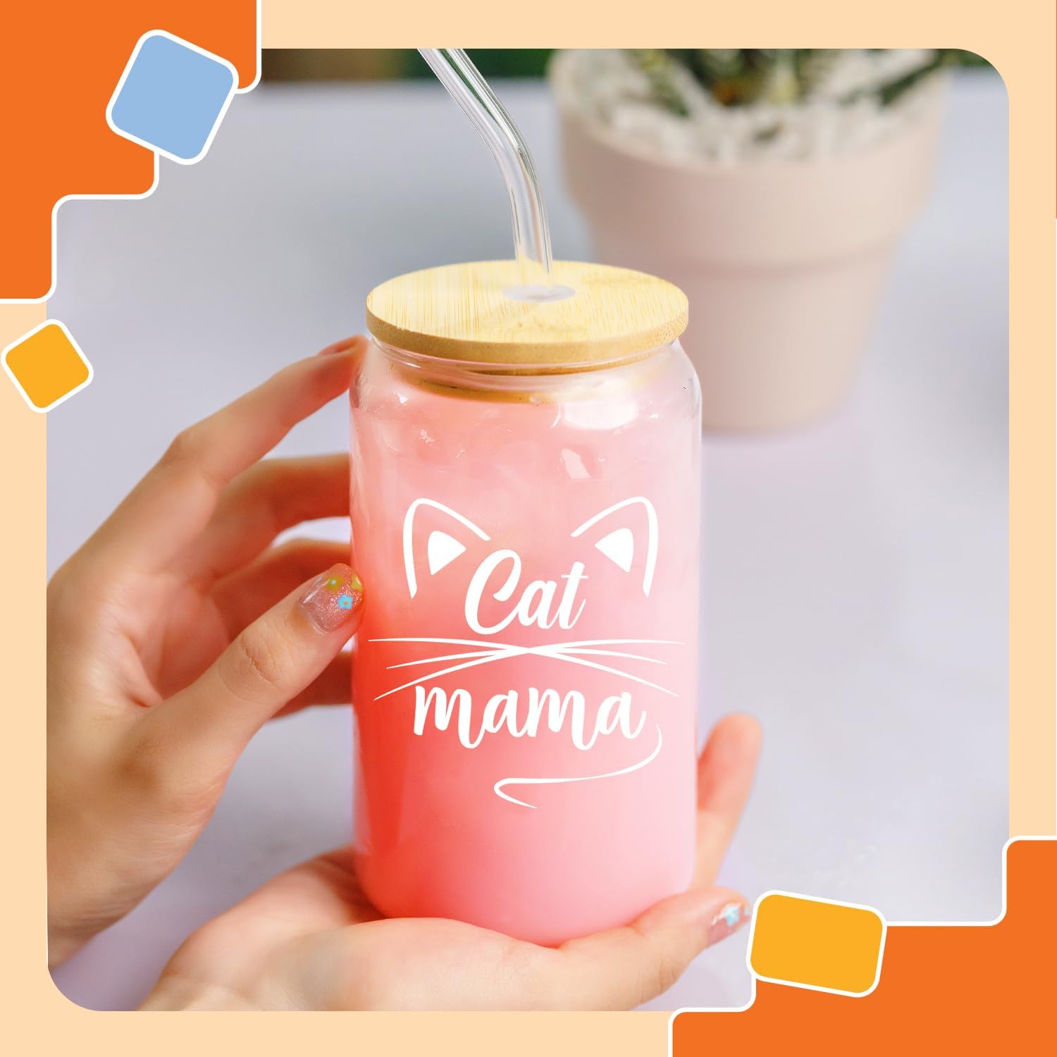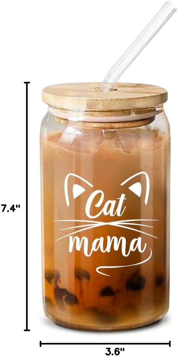 PERFECT FOR CAT LOVERS – Printed with cursive “Cat Mama” text with cat ears, whiskers, and a tail, this 16oz coffee glass is excellent for a cat-loving mom, sister, girlfriend, coworker, or boss.