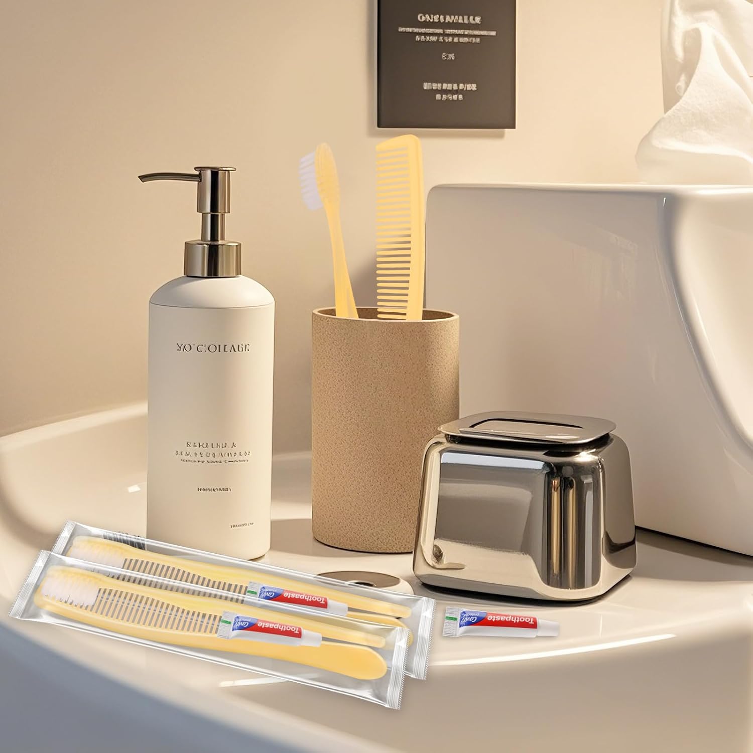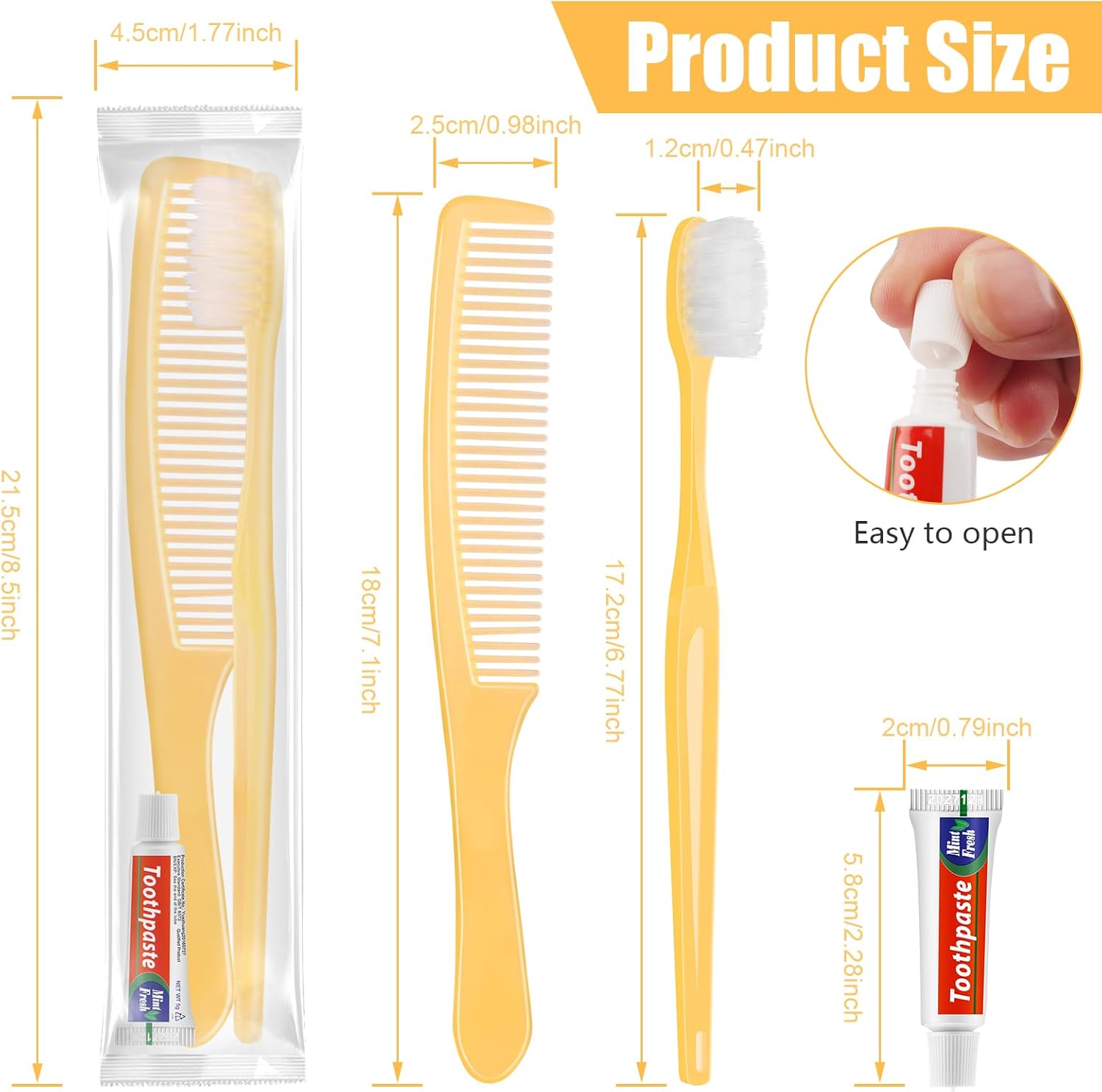 8 reviews for NICEMOVIC 200 Pack Disposable Toothbrushes Bulk with Toothpaste and Comb Travel Size Toothpaste Set Homeless Care Package Supplies Bulk for Individually Wrapped Disposable Travel Hotel Charity, Yellow