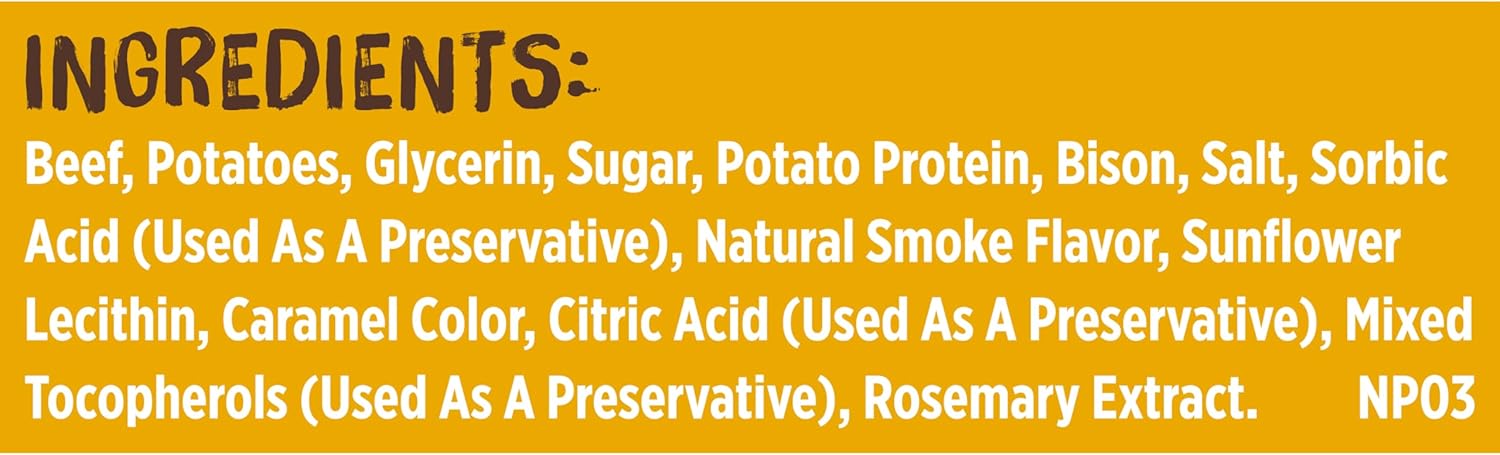 My dogs love these! They are healthy and made partly with bison meat. They are the perfect size for any dog. They look just like a hamburger in color they have stayed fresh in the ziplock bag and last !