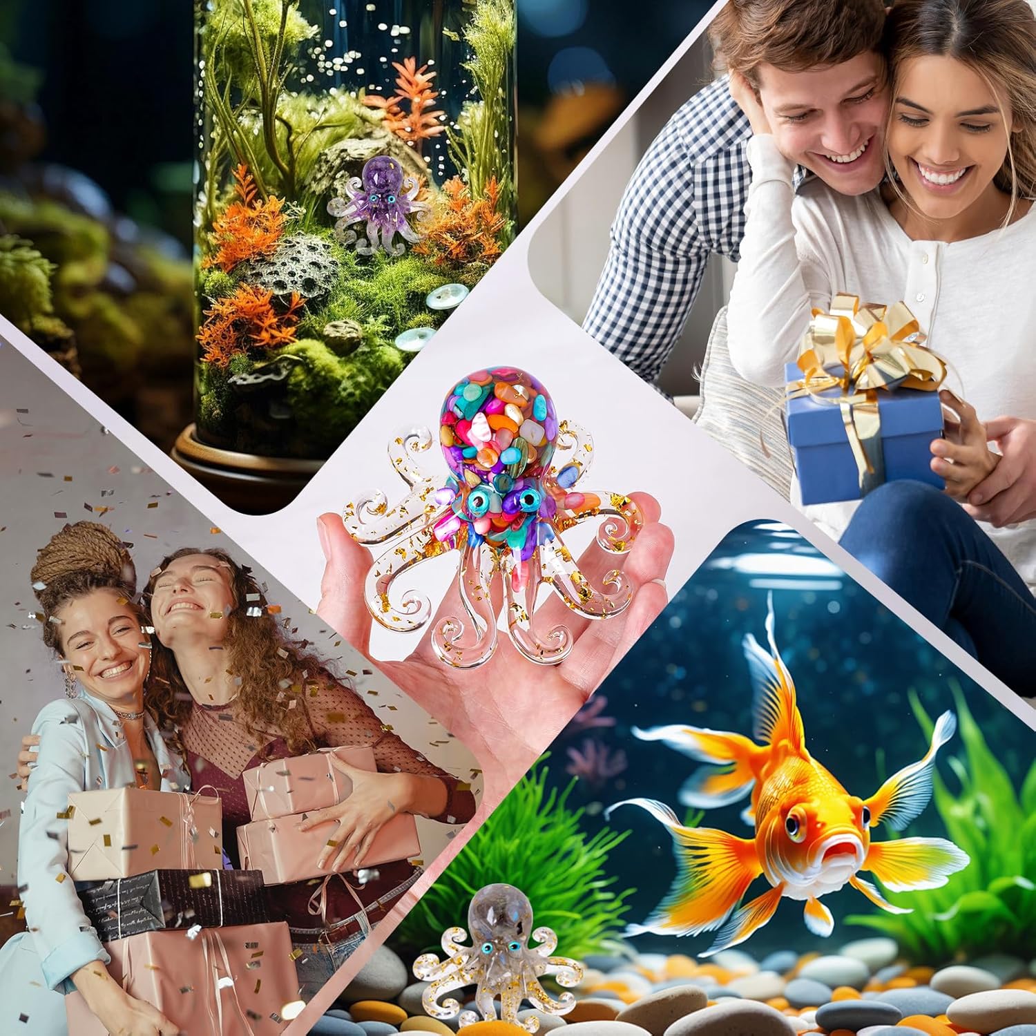 Octopus Decor Aquarium Amethyst Gravel Decorative Resin Glass with Natural Crystal Stone Marine Animals Fish Tank Ornaments Statue Healing Home Decor Ladies Gift 3.93″