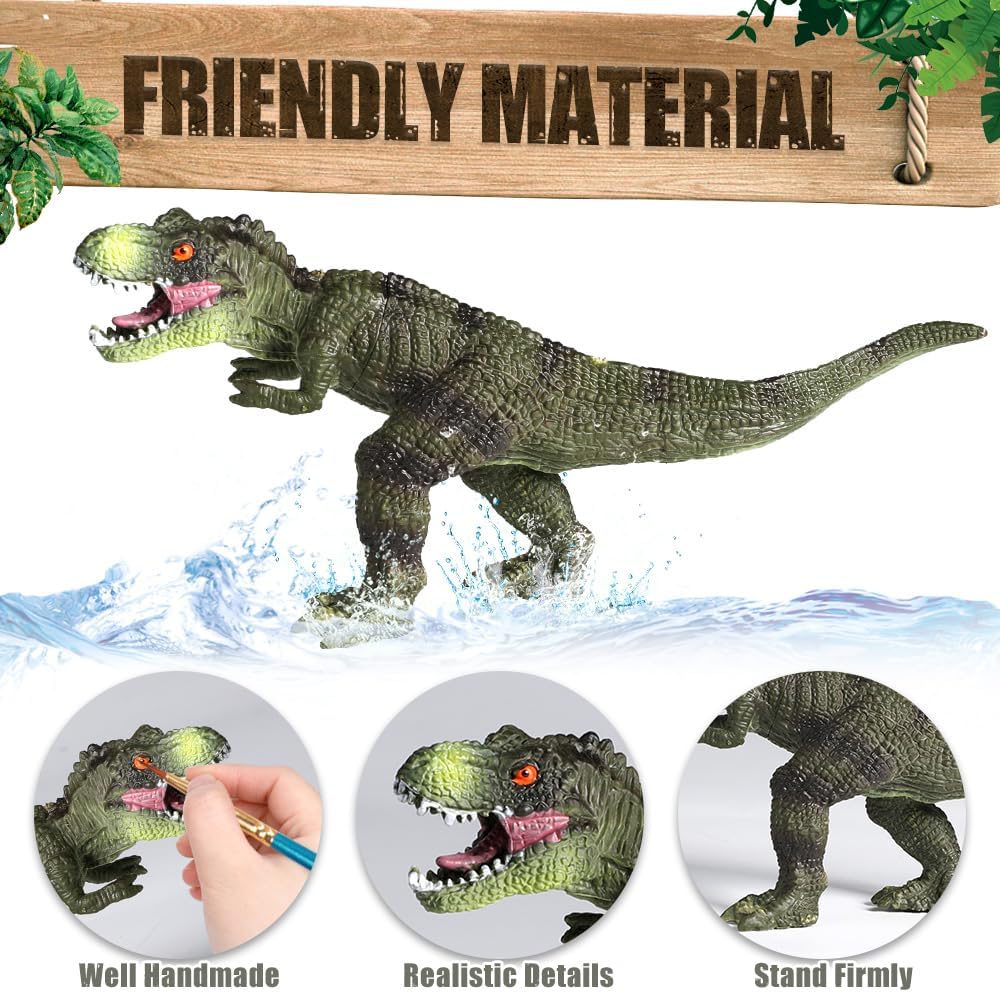 【Realistic Looking with Detailing】Each lifelike dinosaur is made of high-quality ABS material, plus exquisite hand-painted craft makes dino more durable and realistic. Each dinosaur has a unique fighting action, which stands firm and not easy to fall. The great attention to detail and the realistic moves make this play set create a realistic Jurassic dinosaur world for your toddler.