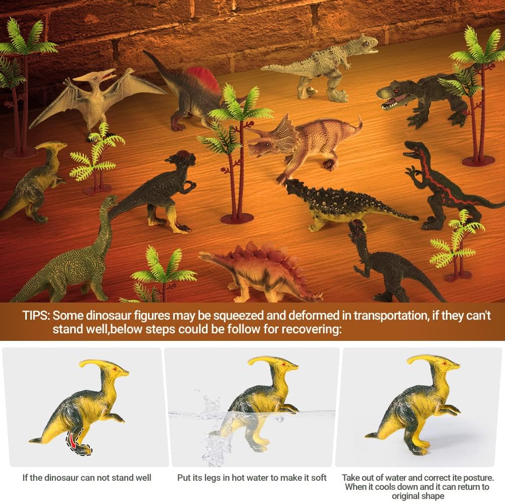 【Educational & Endless Fun】 Kids can use dinosaur figures to role-play and play battle games with friends, and the realistic dinosaur toys will let your baby’s imagination run wild. This can improve your child’s imagination, hand-eye coordination and language skills. This dinosaur set can be used not only as a toy and collectible for dinosaur lovers, as decoration of cupcake toppers, or as a prop for a school science project.