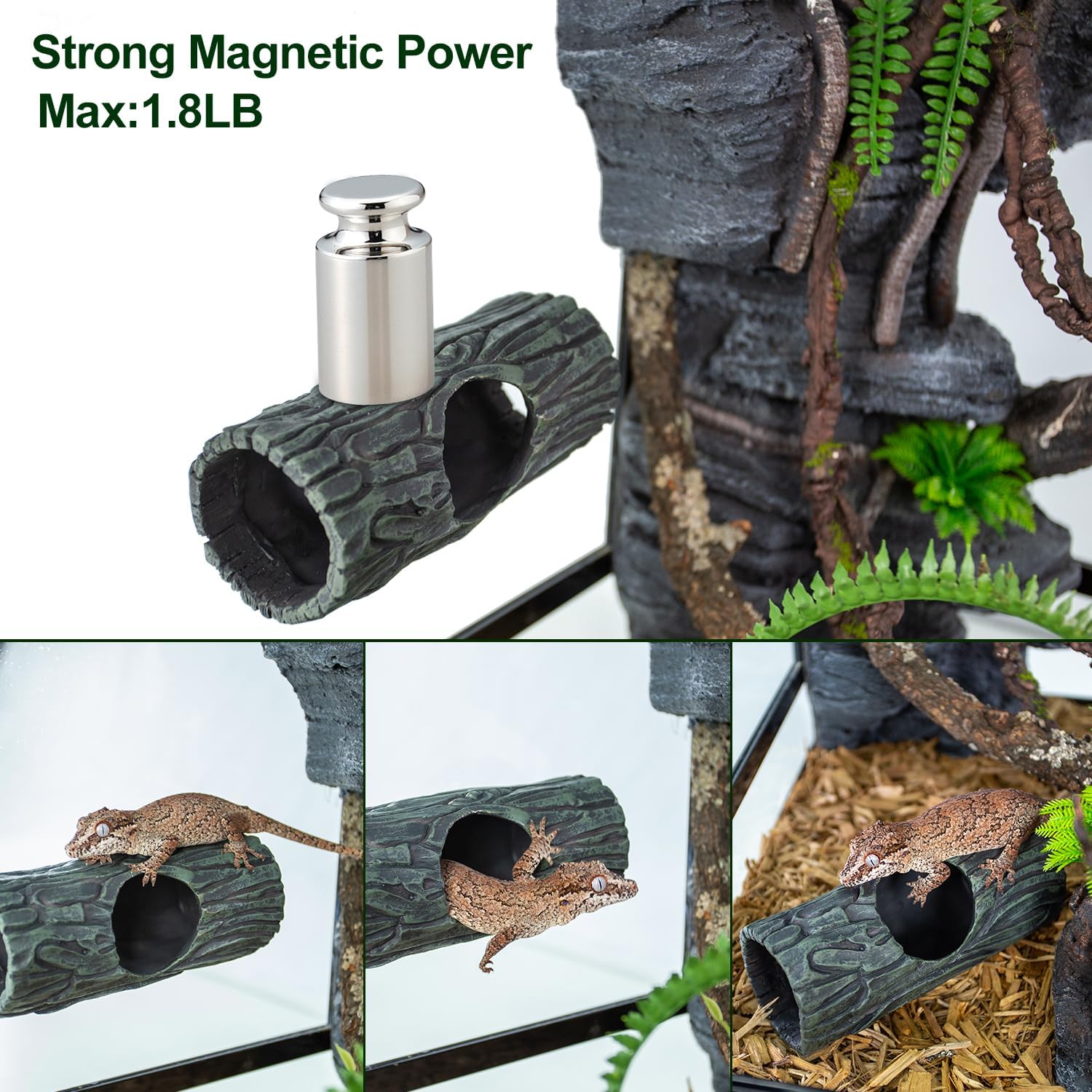 This Magnetic gecko hide come with 2PCS strong magnet, which can be firmly fixed on glass or acrylic terrarium. Easy to adjust position. Support 1.8LB weight