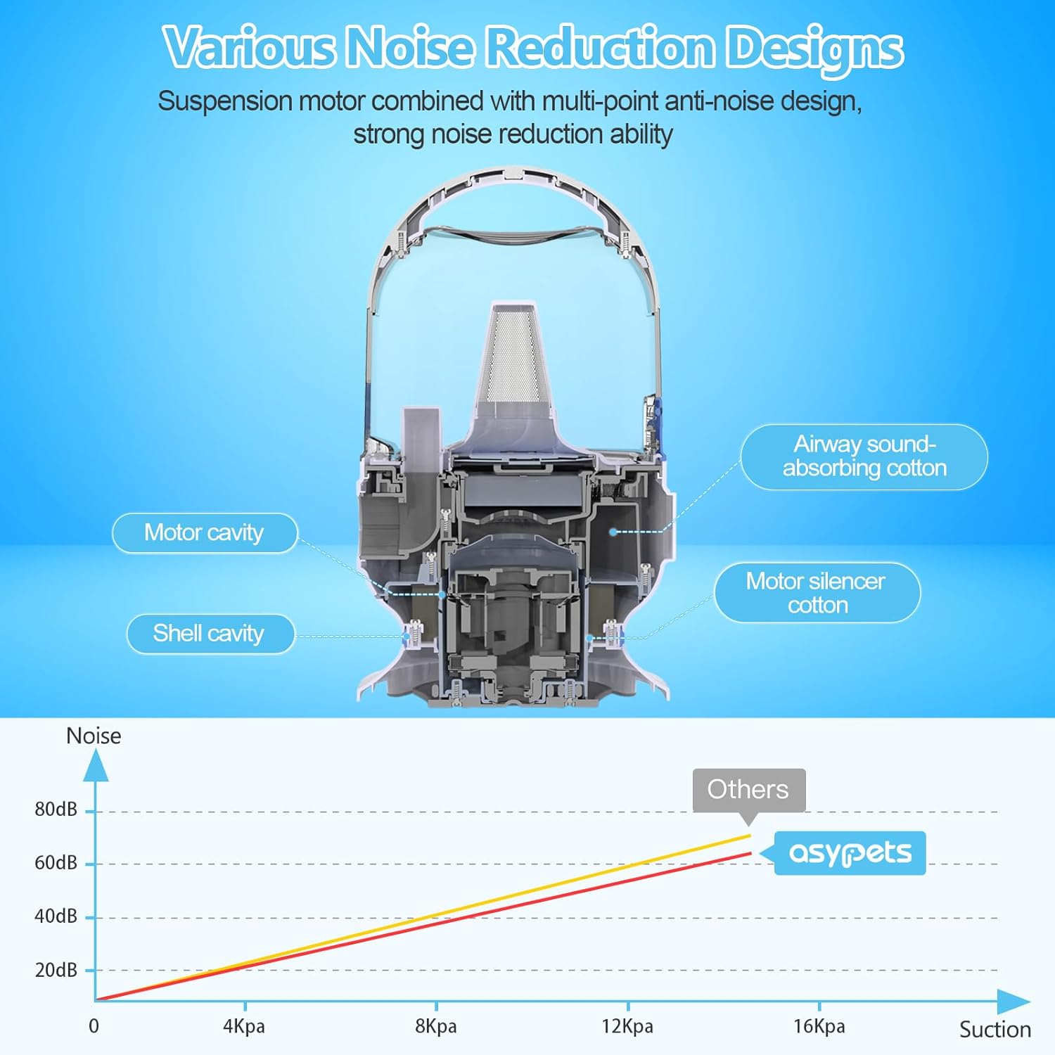 LOW NOISE & HIGH SUCTION: Suspension motor combined with multi-point anti-noise design, the noise is only 50dB. Won’t scare your dog or cat during grooming and effectively protect their sensitive hearing.