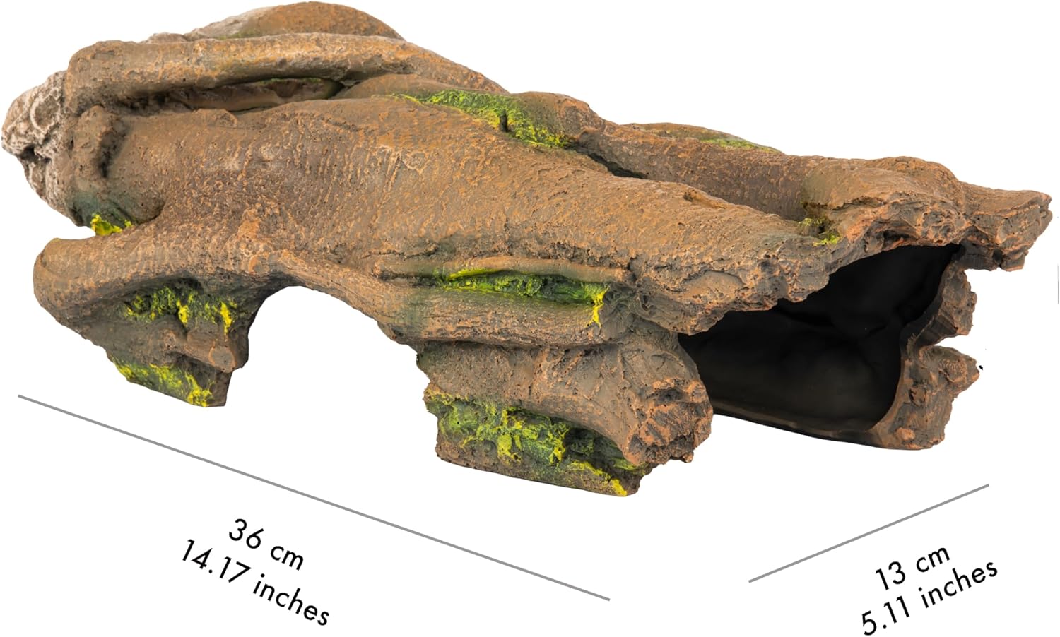 🐠 This EXTRA LARGE hiding log is just over14″ long! It is open at both ends and has a peek hole along the side. The outside surface encourages climbing whilst the inside is smooth to protect your pet. The perfect cave, reptile hiding log or tarantula hide