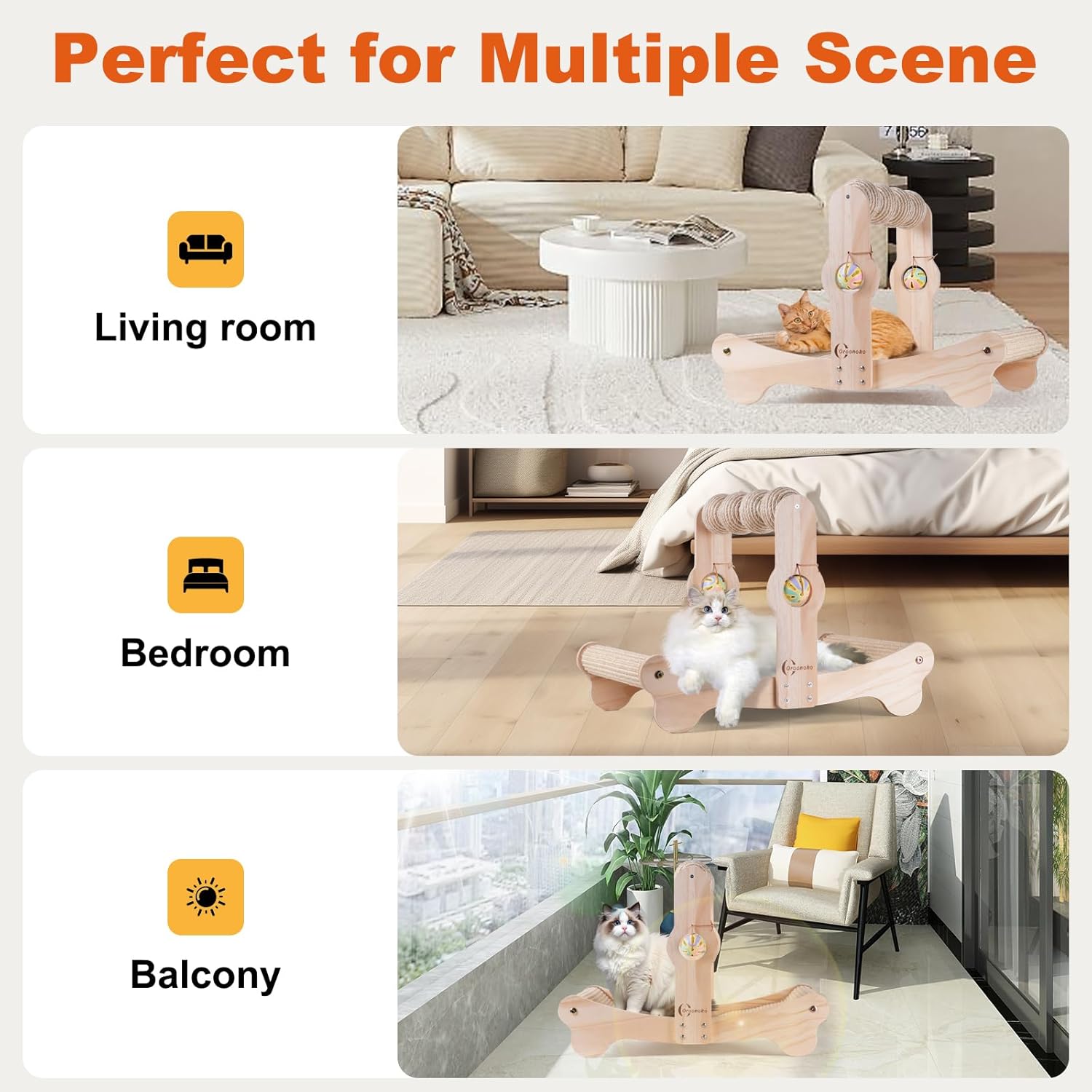 【Anti-Tip Heavy-Duty Base】 Reinforced wooden frame and widened legs provide stability even for energetic 50+ lbs cats, preventing wobbling during vigorous scratching sessions.