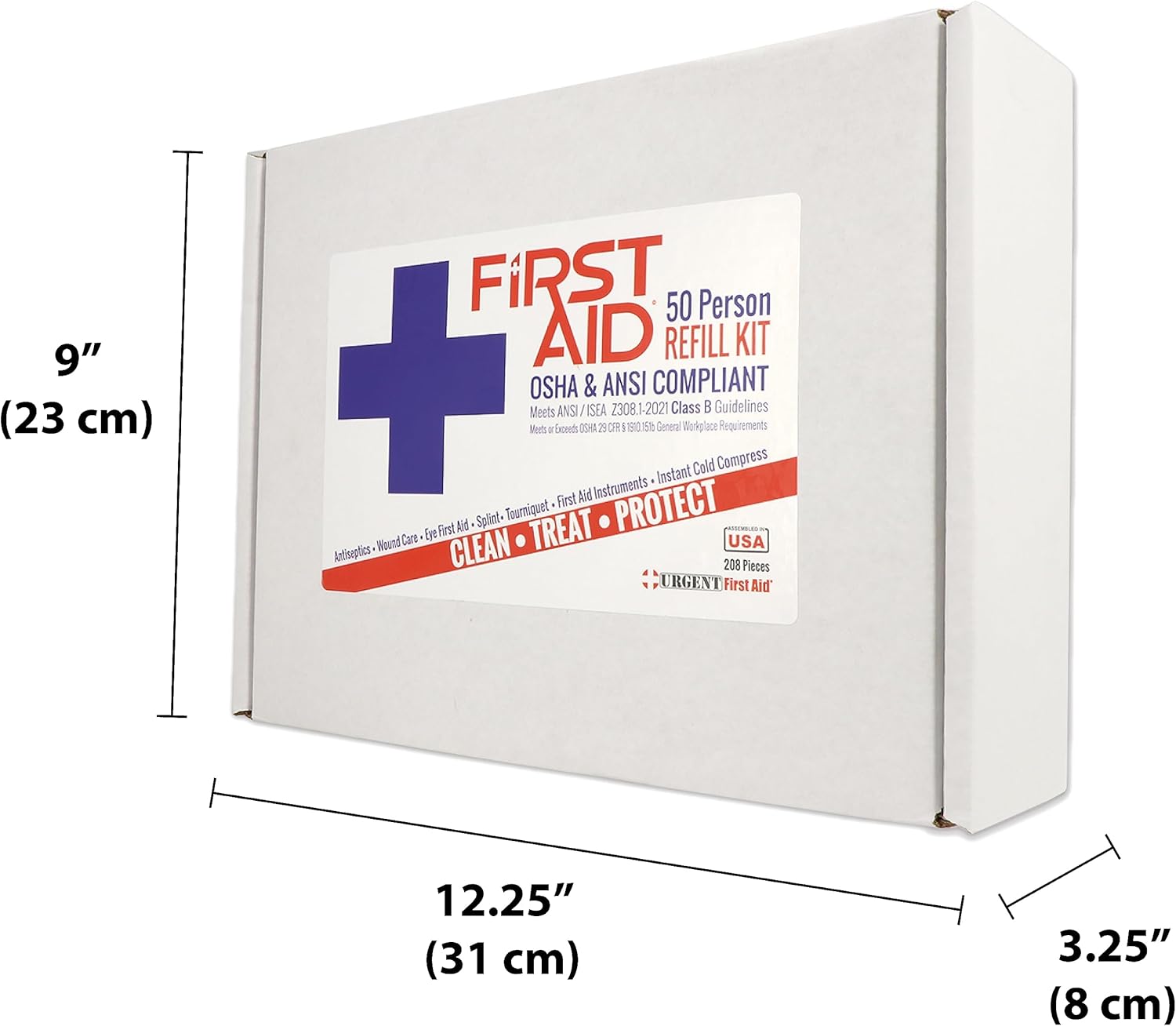 OSHA & ANSI First Aid Kit Refill/Upgrade, 50 Person, 208 Pieces, ANSI 2021 Class B – Includes Splint, Tourniquet, Tools, Single dose and More: Fill Your kit or use to Upgrade to Current regulations…