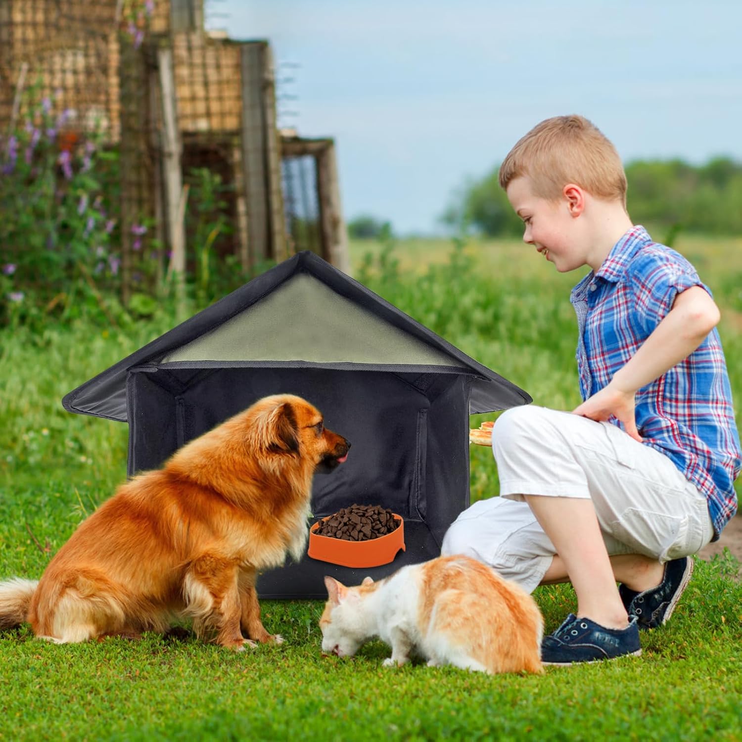 Weather resistant design: The sloping roof and waterproof fabric material of the outdoor cat feeding station effectively protect food and water from rain, snow, and debris, ensuring that cats can enjoy clean food in any weather conditions.