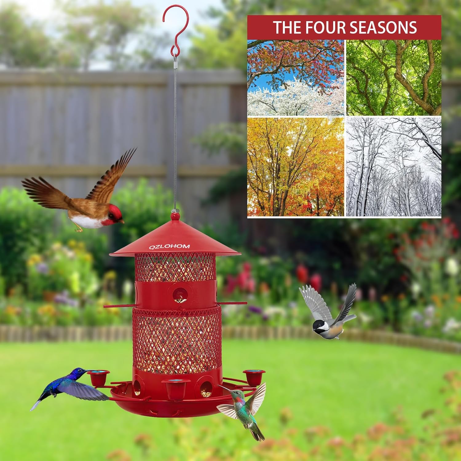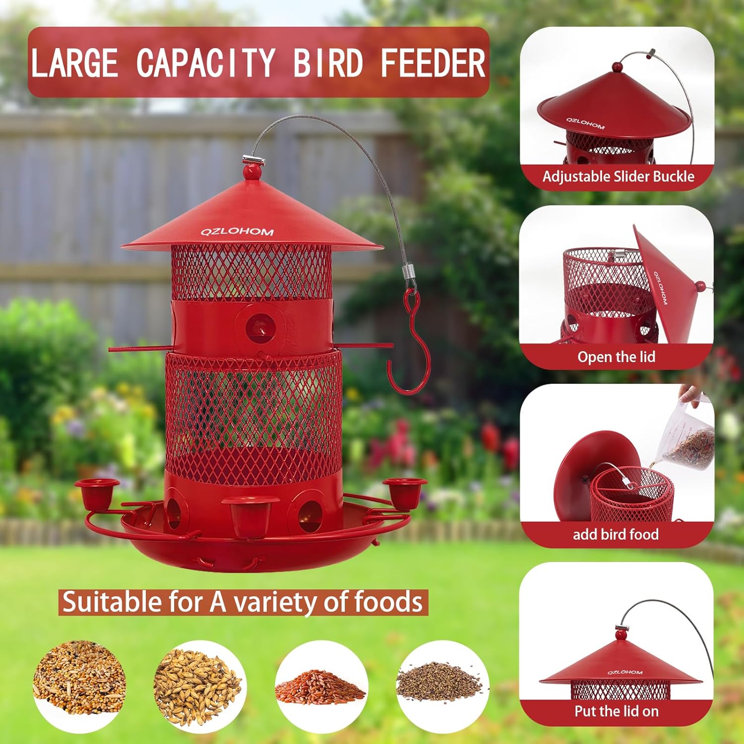 Outdoor Metal Bird Feeder, Hanging 360-Degree Feeding with Large Capacity 3.8LB, Durable Rust-Proof Iron for Yard, Garden & Balcony, Easy to Clean for Bird Lovers