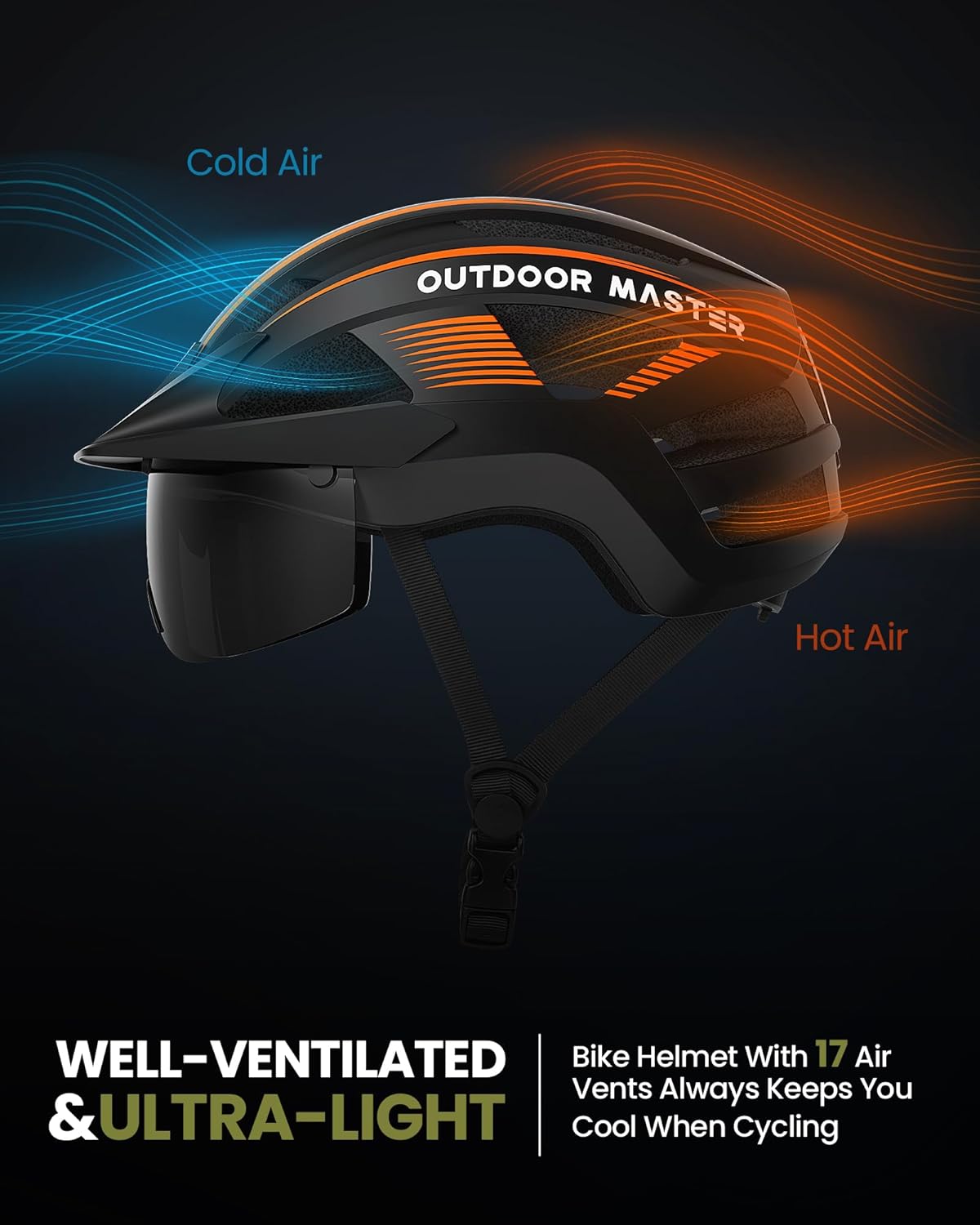 OutdoorMaster Adult Bike Helmet – Bicycle Helmet with Rechargeable Rear LED Light, Detachable Magnetic Goggles, Removable Sun Visor – Suitable for Commuting and Cycling for Men and Women