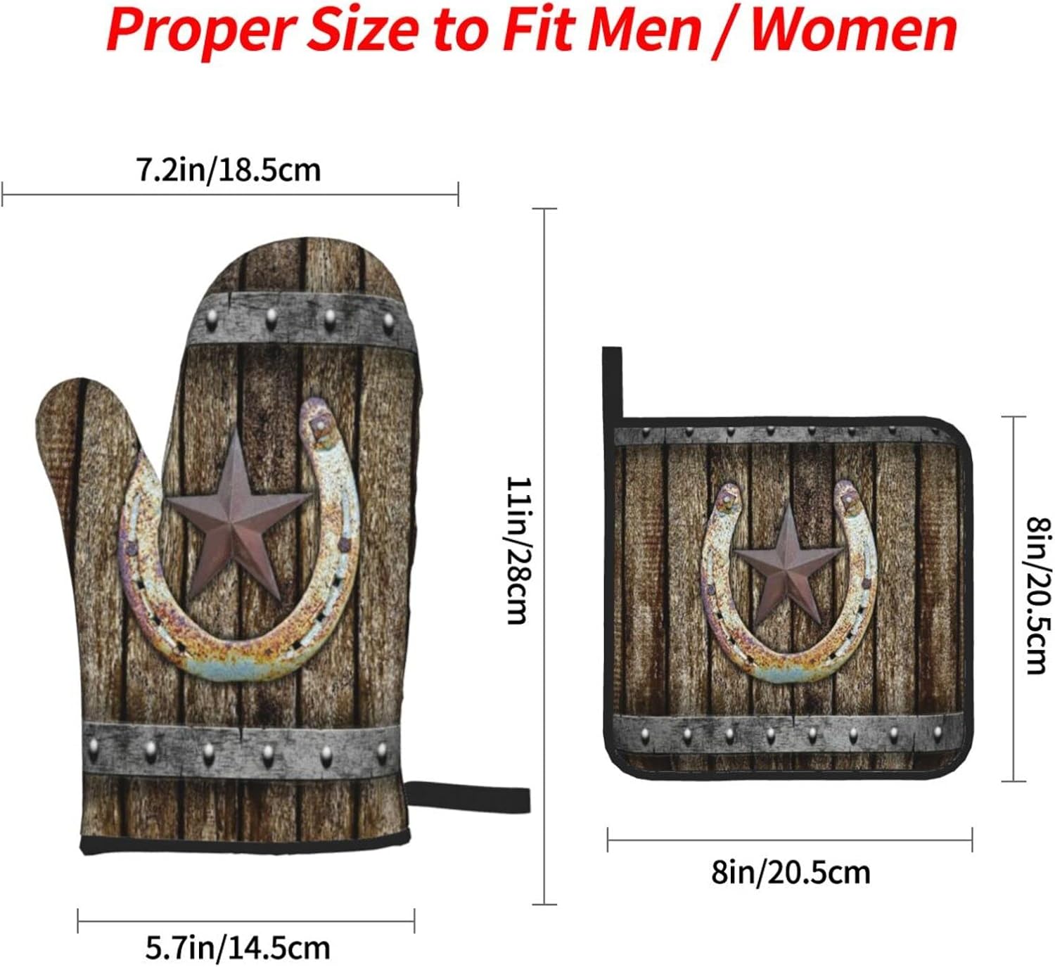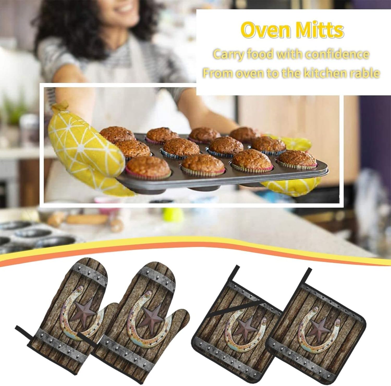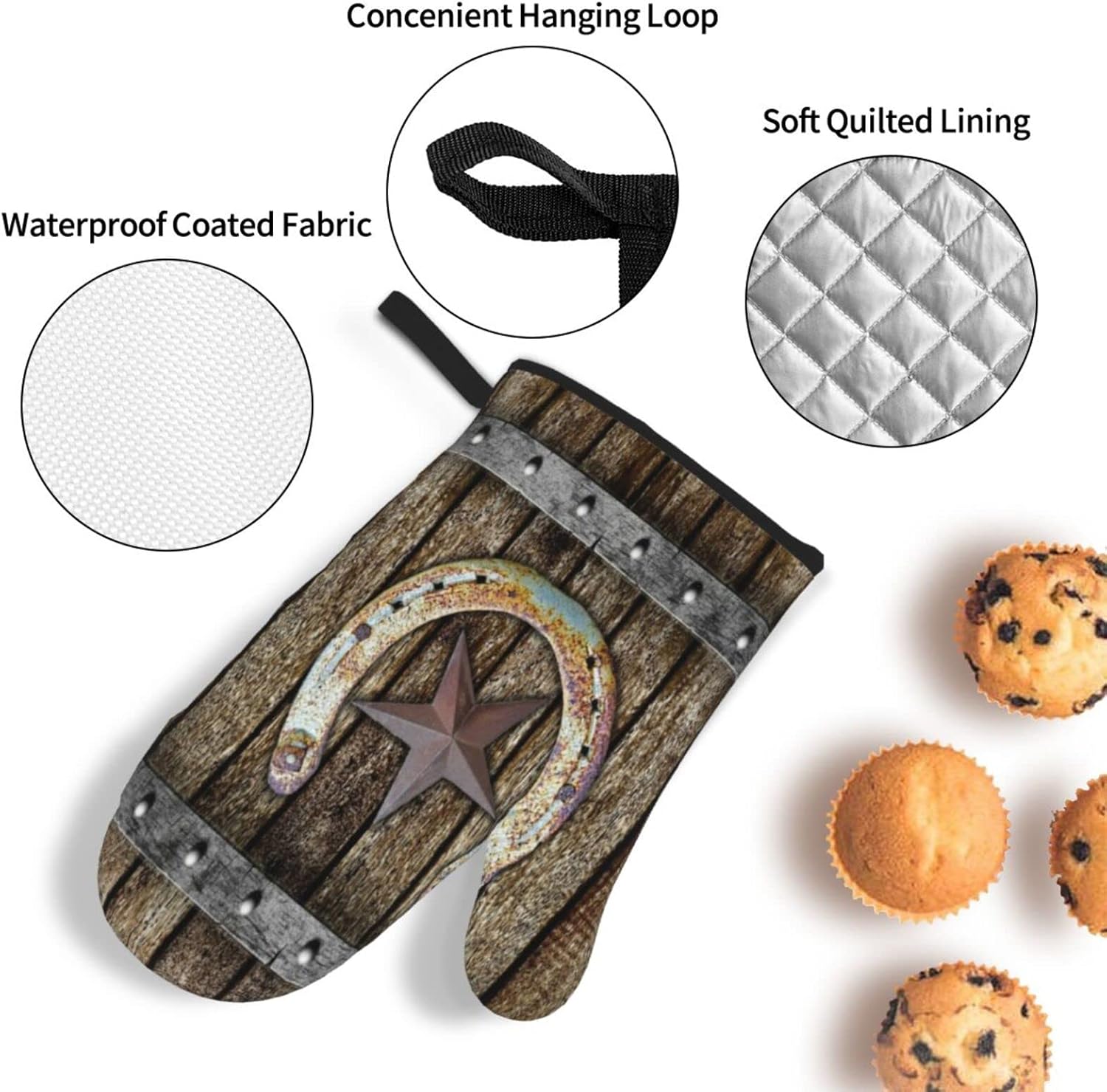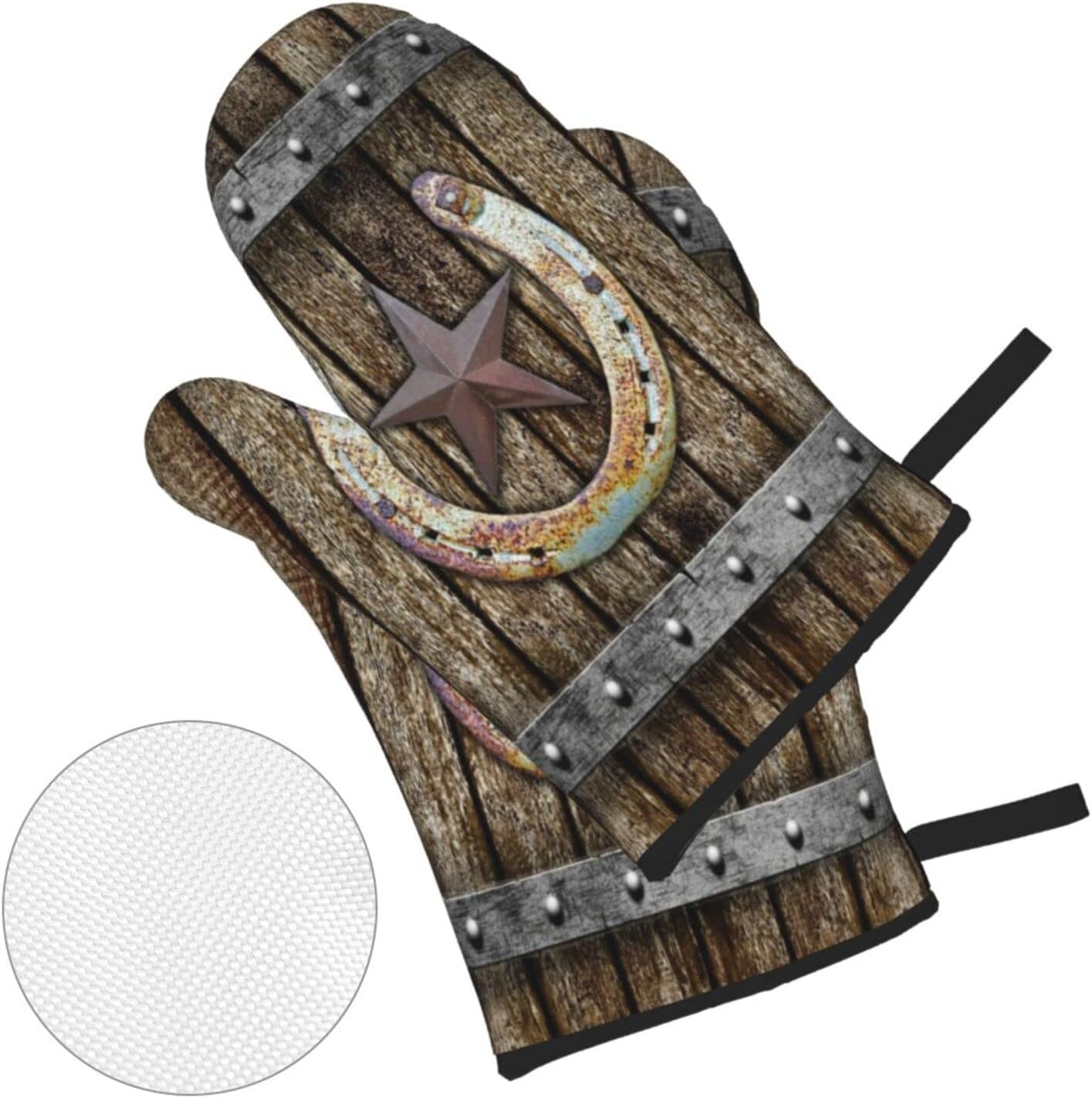 2 reviews for Oven Mitts and Pot Holders Sets of 4 Rustic Farmhouse Rusty Horseshoe Texas Star Vintage Western Country Cabin Brown Polyester Oven Mitts with Oven Gloves and Hot Pads Potholders for Kitchen BBQ