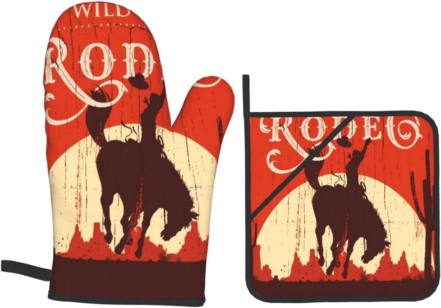 6 reviews for Oven Mitts and Pot Holders Sets of 4,Cowboy Horse Sunset Saguaro Desert Wild West Rodeo Vintage Wooden Sign Print,Oven Mitts Heat Resistant Oven Gloves Set Potholders for Kitchen Baking Grilling