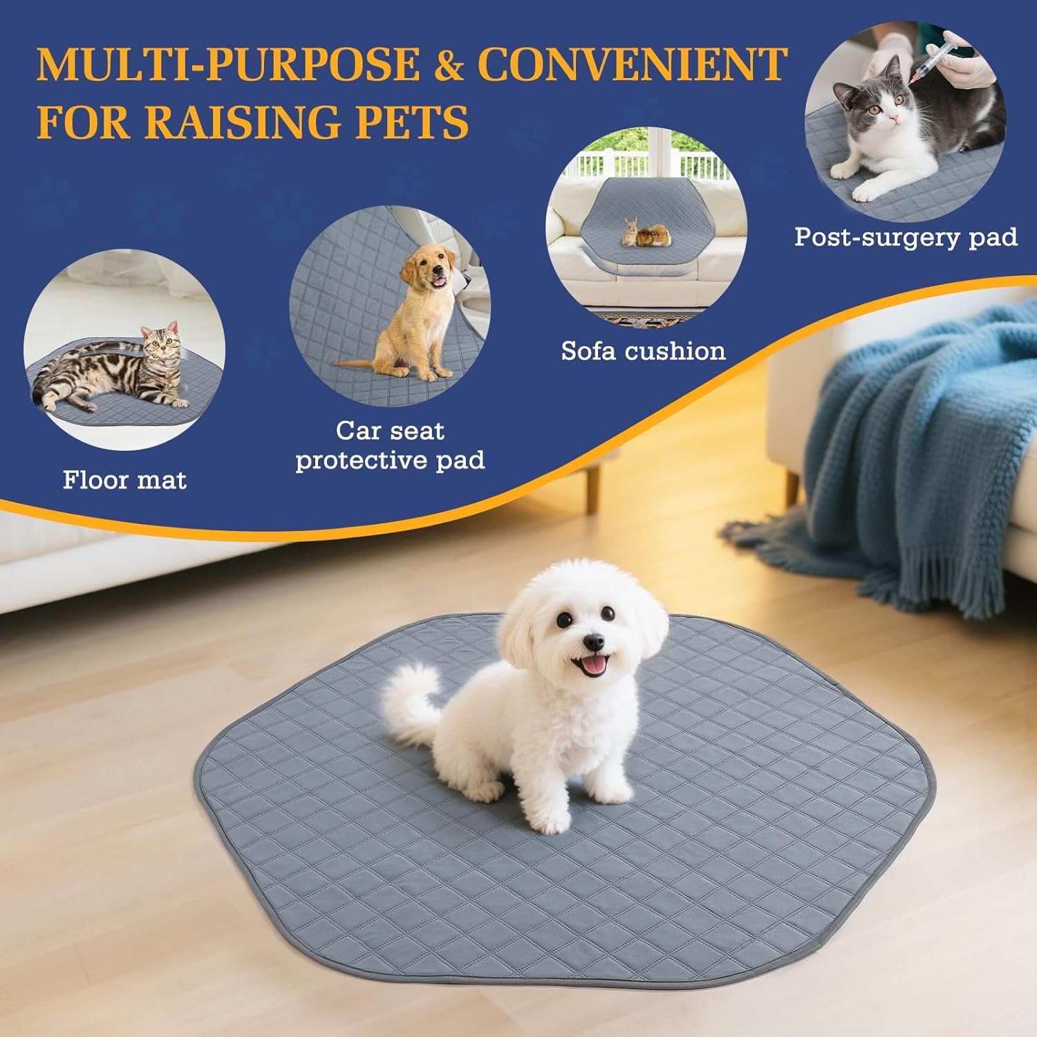 Pawaboo Pee Pad for Dogs and Cats, 44.5in Pet Absorbent Hexagon Mat Reusable Dog Playpen Liner, Waterproof Small Animals Cage Tent Pee Pad with Non-Slip Rubber Pads, Indoor/Outdoor Pet Fence Mat