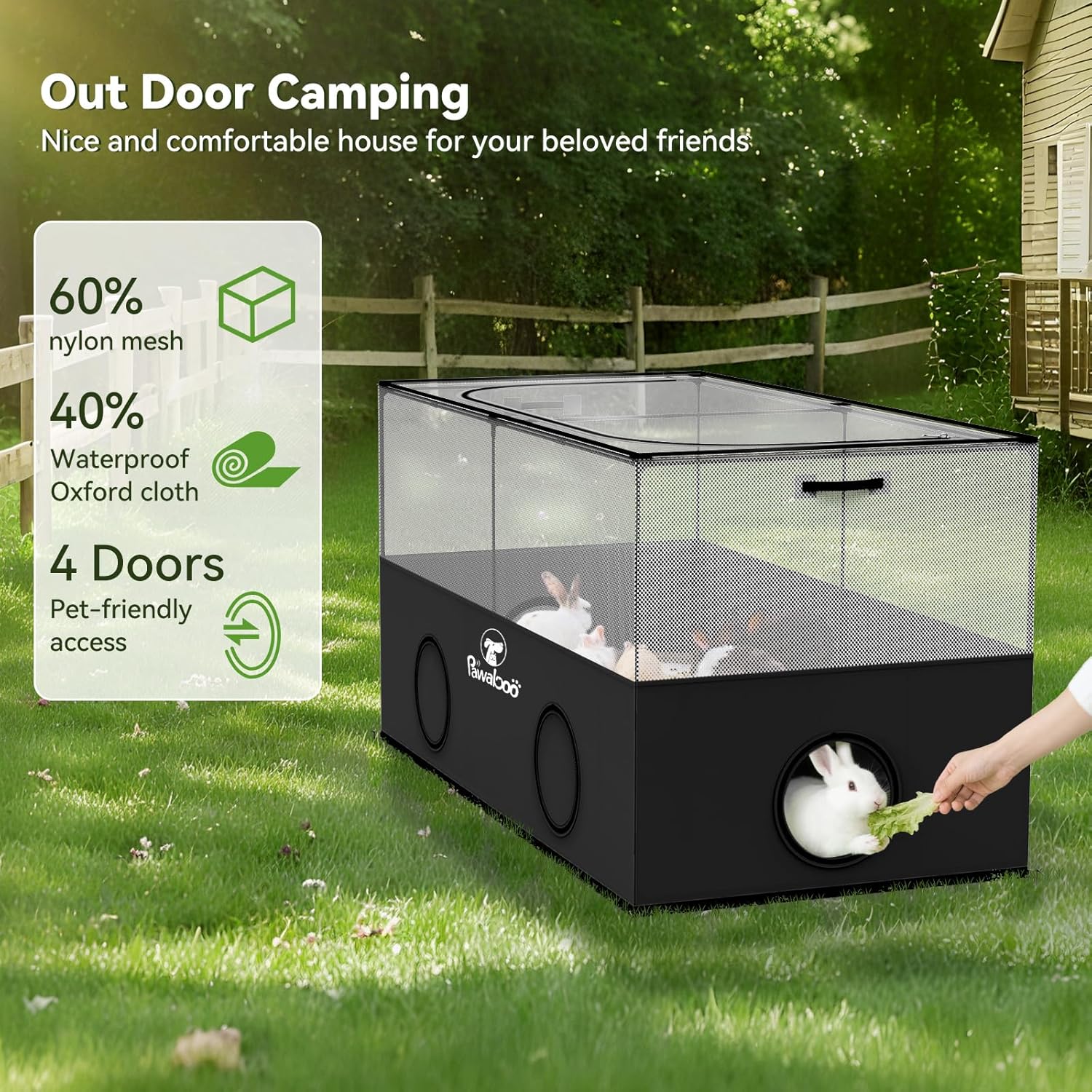 Pawaboo Small Animal Playpen, Pet Cage Tent with Breathable Mesh Wall and Bottom, Foldable Small Pet Enclosure for Puppy Kitten Rabbit Chicken Hamster Guinea Pig Indoor Outdoor Fence, Black