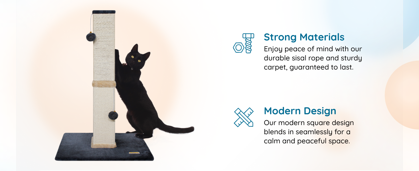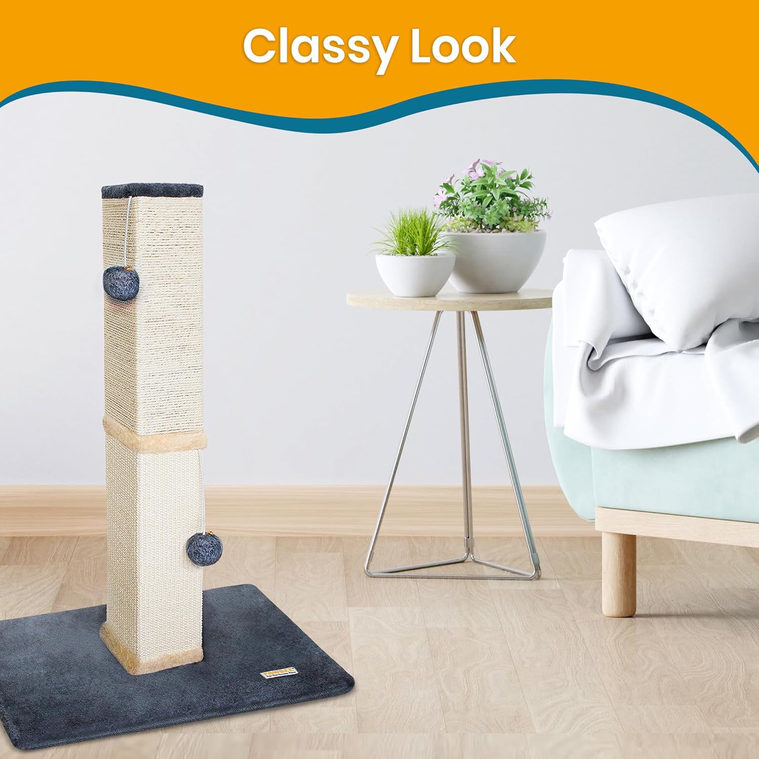 Discover The Difference: Stability you can count on – that’s what sets apart our cat post for indoor cats from the rest. The base on our cat scratch tower is larger than most, measuring 20” (W) X 16” (D). So, as kitties claw, stretch, and jump on the post, it stays nice & stable.