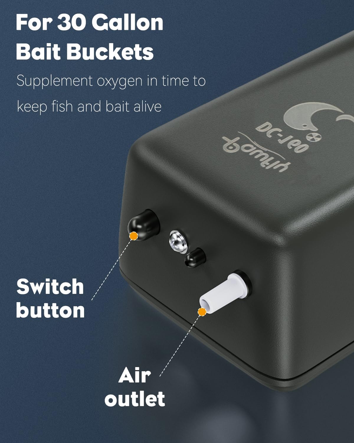 Portable Aerator: Measure 6″ L x 3″ W x 1.8″ D. Convenient to carry and use in aquariums, tanks, buckets or outdoor fishing aeration. Space-saving and convenient to use outdoors.