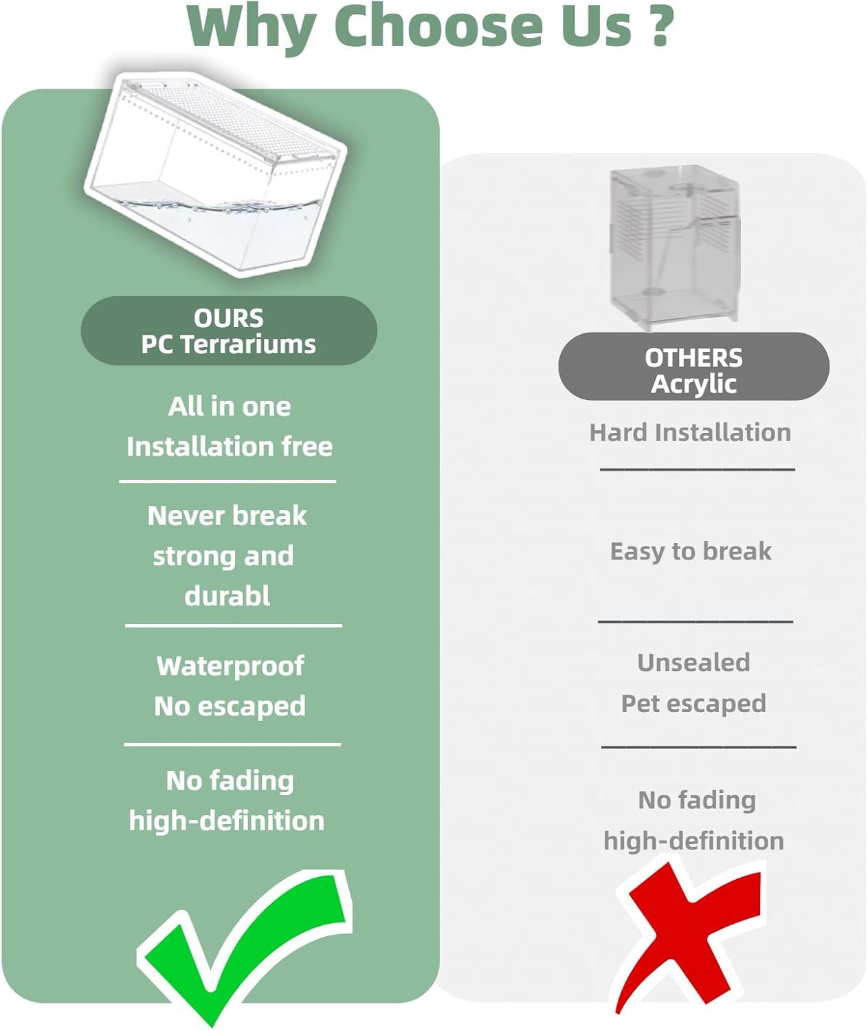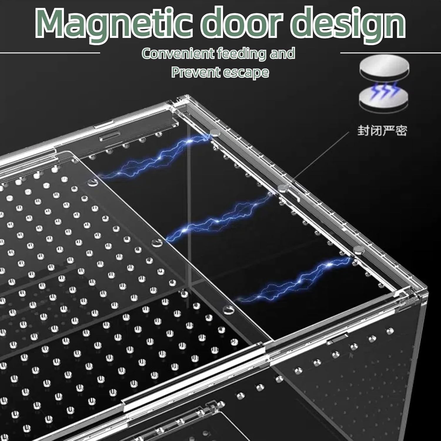【No Assembly Required】: the tank forms a one-piece, waterproof structure—no assembly required. With a top magnetic door , it also ensures an escape-proof design, ideal for hermit crab enclosures, jumping spider enclosures, and other small reptile habitats.