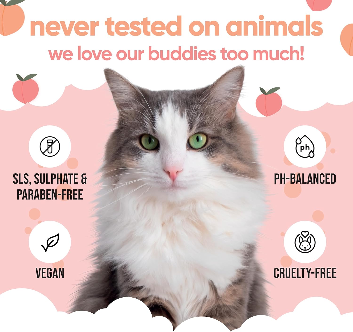 PH BALANCED SALON QUALITY – Our cat shampoo has a mild formula that’s kind to your moggy’s skin, while the peach extract and pro-vitamin B5 enhance, condition, and look after their coat.