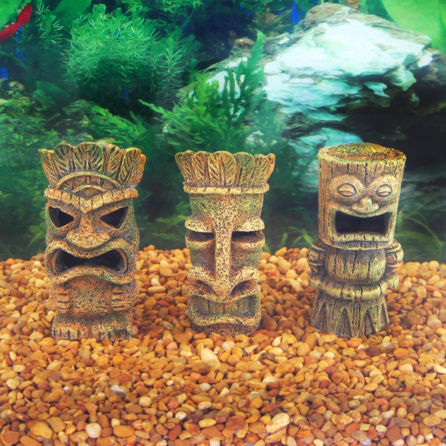AUTHENTIC TIKI DESIGN: Each ornament is crafted with exquisite detail, featuring classic Tiki motifs like tribal masks and totems deriving from a long history from the South Pacific regions. The 4-inch Tiki provides a stimulating environment for your aquatic pets while enhancing the aesthetic appeal of your setup.