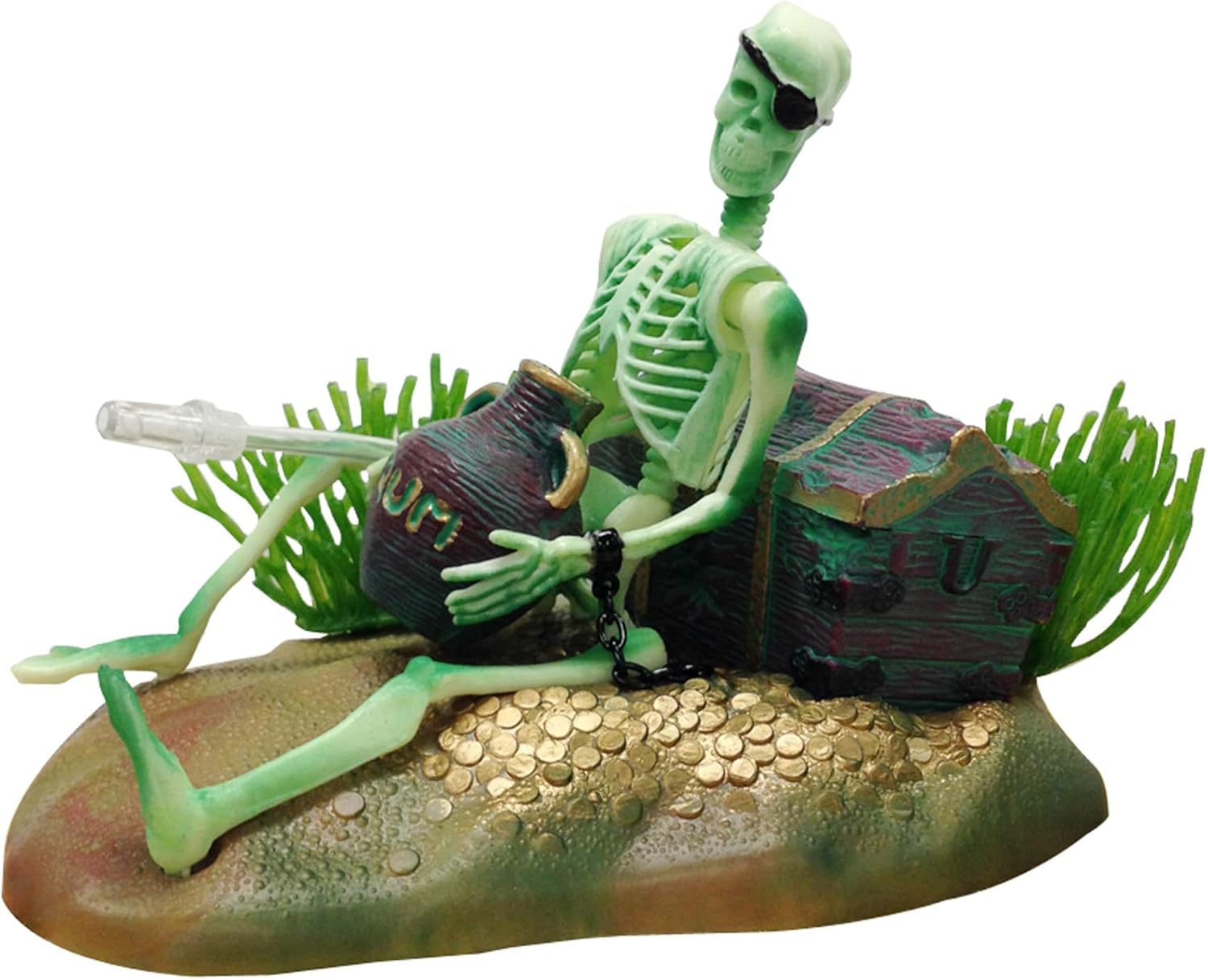 Penn-Plax Action Air Pirate Skeleton with Jug & Treasure Chest Live-Action Aerating Aquarium Ornament