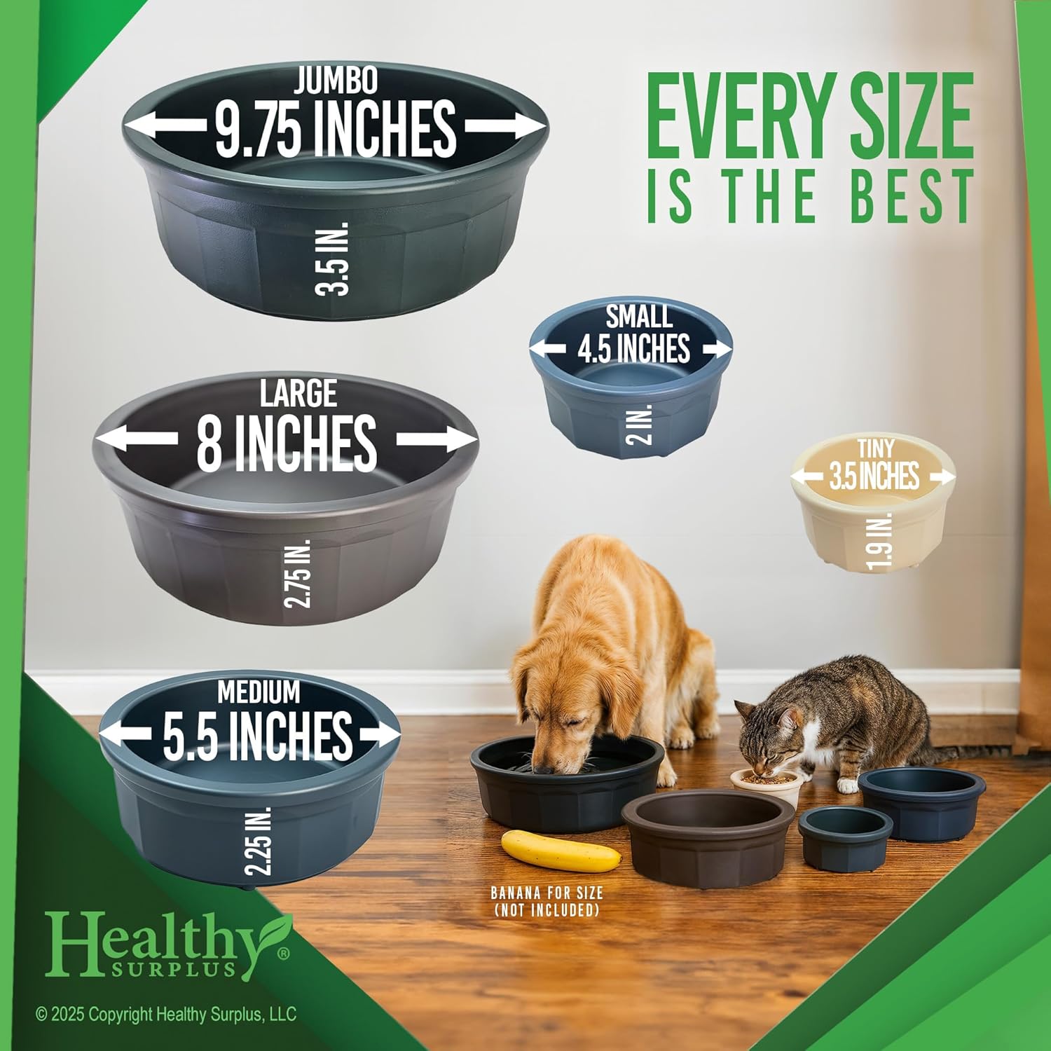 Whether you’re feeding a playful puppy, a curious cat, or a small animal in your barn, Healthy Surplus Pet Crock Bowls deliver lasting performance you can count on. Made from thick, heavy-duty plastic, these bowls are built to withstand chewing, dropping, and daily use. Their non-tip design helps keep food and water where it belongs – inside the bowl – while the BPA-free, easy-clean surface makes maintenance simple. Perfect for indoor or outdoor use, they’re great for home, travel, camping, kennels, and farms. Available in five sizes (Tiny, Small, Medium, Large, Jumbo) and three colors, you can find the perfect fit for every pet and every feeding setup. Whether you need a sturdy dog water bowl, a reliable cat dish, or a versatile feeding solution for multiple animals, Healthy Surplus Pet Crock Bowls make mealtime easier for you and healthier for your pets.