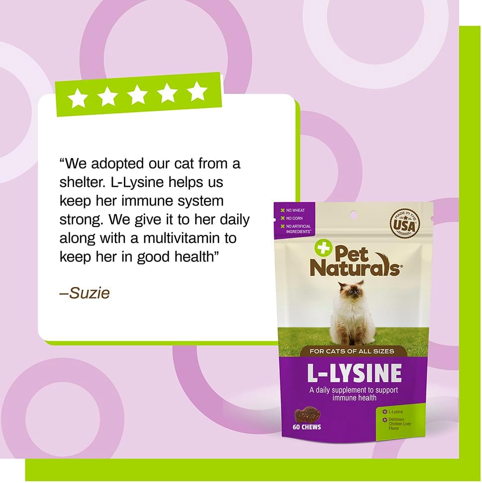 Pet Naturals Lysine for Cats, Chicken Flavor, 60 Chews – Immune and Respiratory Support for Cats – No Wheat or Corn – Vet Recommended