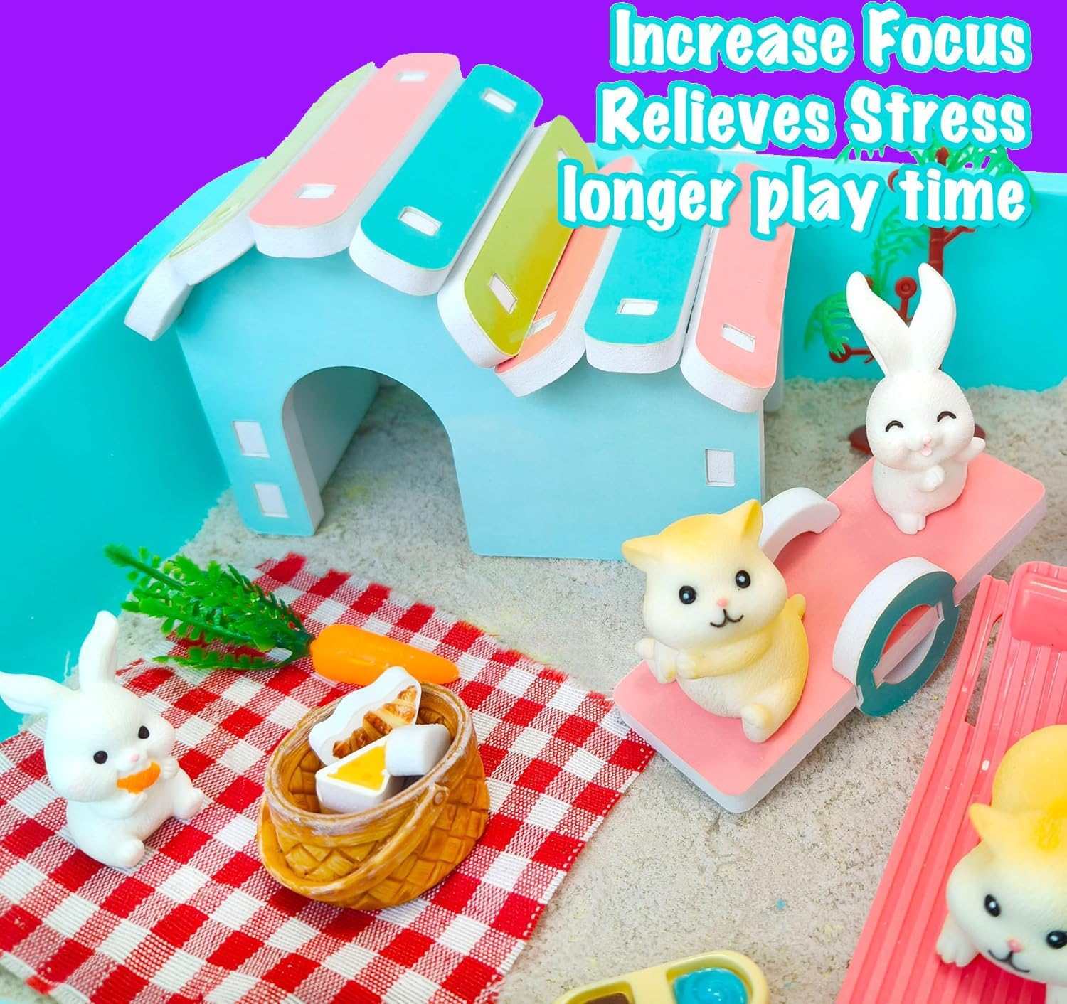 Pet Sensory Bin,Hamster and Rabbit Habitat,Animal Sensory Sand Kit for Boys and Girls, Pet Sensory Toys,Summer Beach Toys, Sandbox Play Set for Toddler Ages 3 4 5 6 7 8
