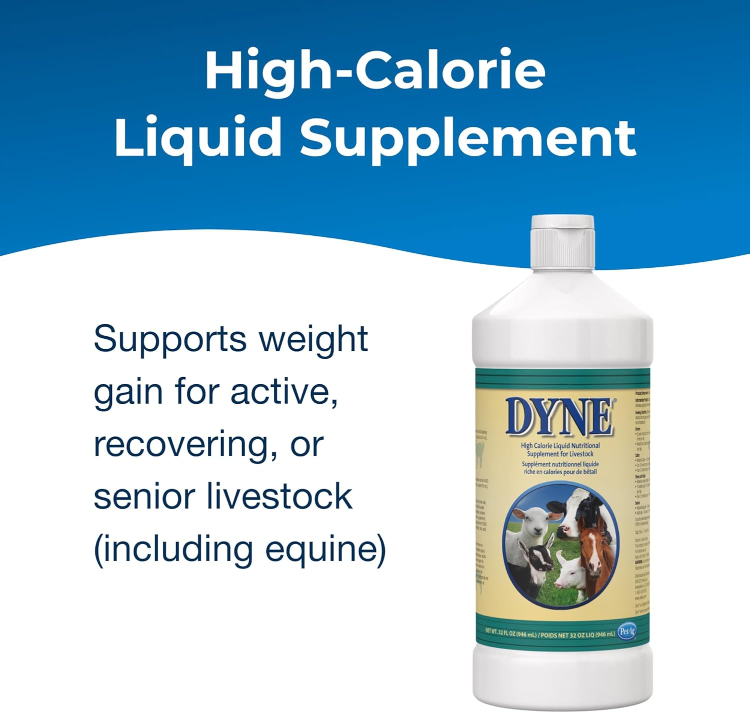 PetAg Dyne High Calorie Liquid Nutritional Supplement for Livestock – 32 oz – Includes Added Vitamins – Excellent for Underweight, Stressed, or Recovering Animals