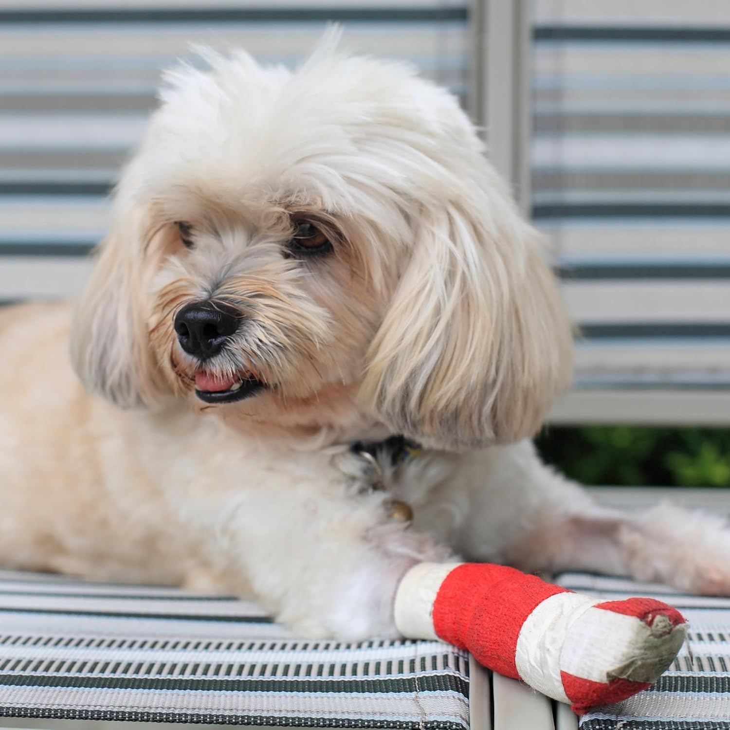 I was skeptical how long my dog would take to tear this off of paw.. Very surprised it held on very well!Dog did not attempt to chew after first try so the taste must be like “bitter apple” as that is the only thing thatusually stops my dog from chewing. Great product versus having to struggle with booties for dog with sore paw!