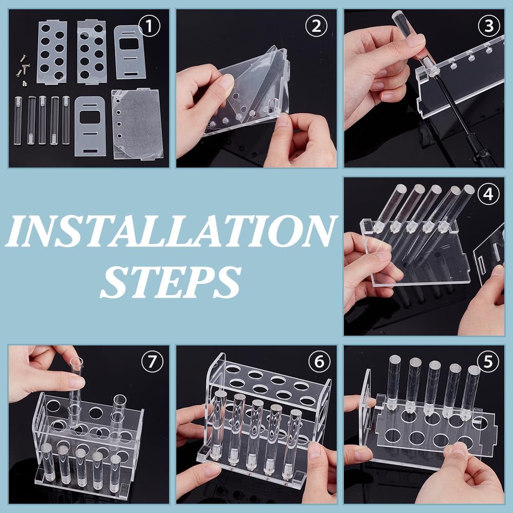 Reliable Material: the test tube holder is made of quality acrylic which ensures durability and longevity, lightweight and compact, not easily prone to breaking or cracking, ensures effortless handling during experiments or work, enhancing overall efficiency