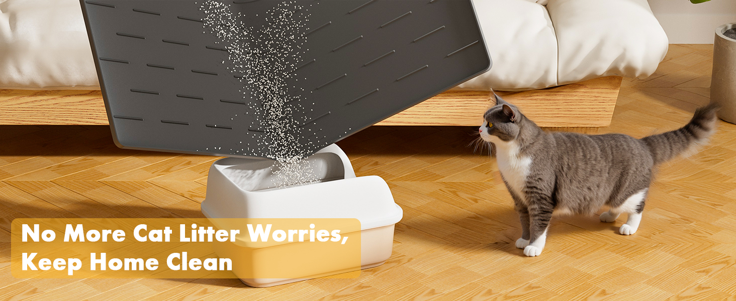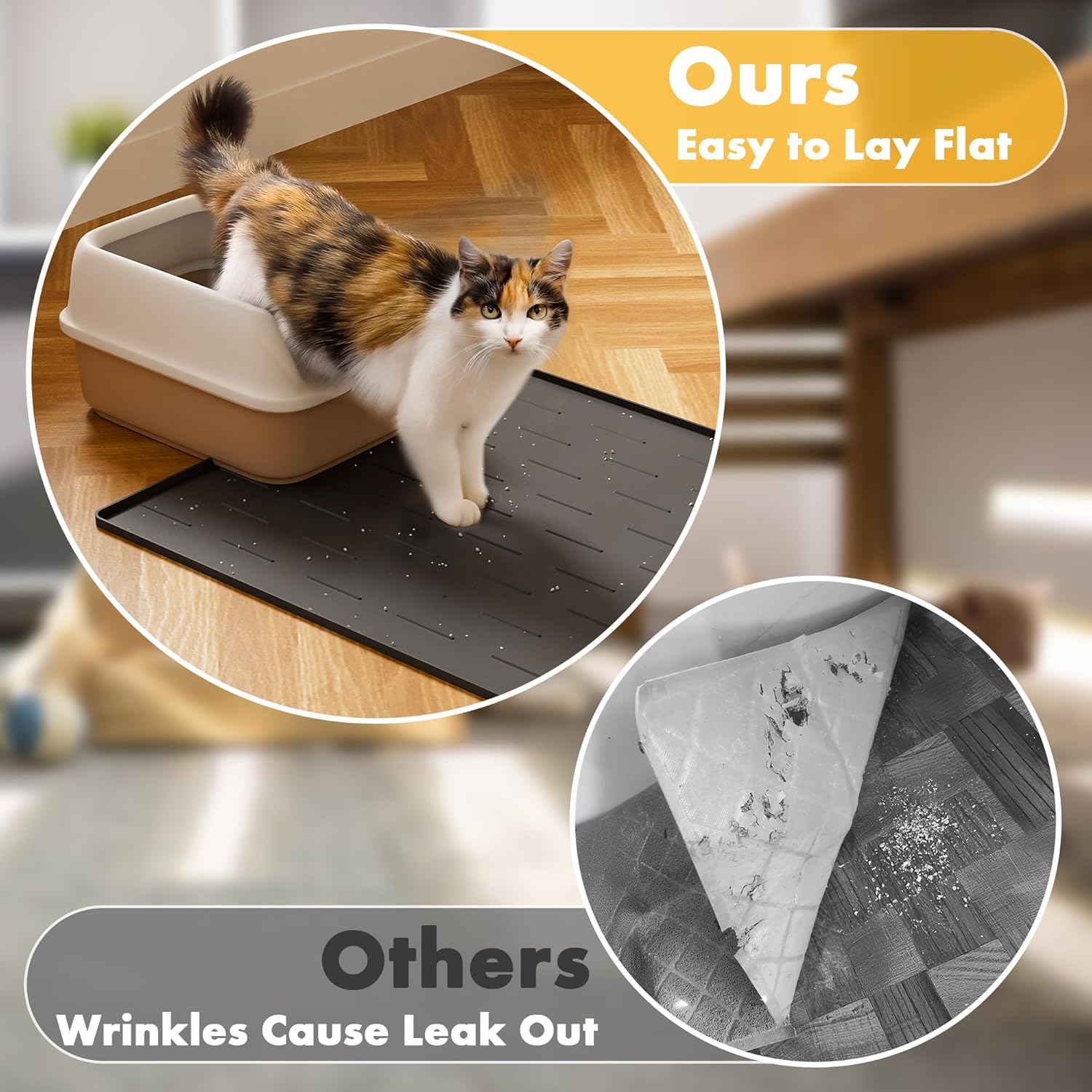 Soft, Pet-Safe Silicone: Made of premium silicone, this litter mat is gentle on kitty paws yet tough and durable. Even if it is trampled on or scratched for a long time, the litter box mat can still maintain a good condition and not easy to be damaged or deformed.